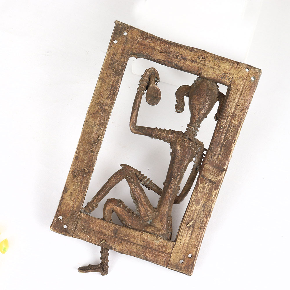 Decorate your interior with this exquisite Vintage Brass Tribal Art Man Figure that is a testament to craftsmanship and cultural richness. Handmade by professional Indian artisans specializing in Tribal Art, this unique piece boasts a stunning antique brown finish that adds a touch of timeless elegance to any space. Crafted from high-quality brass, the figure captures the essence of tribal heritage, reflecting the intricate artistry and attention to detail synonymous with Indian craftsmanship. The artisan's expertise shines through in every curve and contour, creating a captivating visual narrative. Ideal for adorning homes, offices, restaurants, hotels, or cafes, this art piece seamlessly blends tradition with contemporary aesthetics. Its versatile charm makes it a perfect addition to any setting, while its antique allure enhances vintage collections. Beyond being a statement piece, this Vintage Brass Tribal Art Man Figure serves as a thoughtful gift for loved ones on special, festive, or auspicious occasions.
