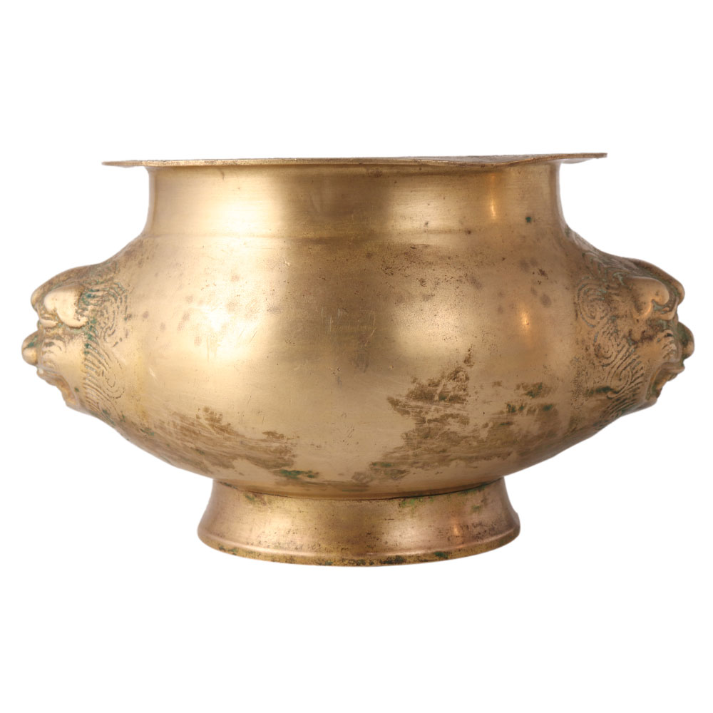 A vintage water pot in brass metal. Engraved with two embossed lions in Chinese art. A brass pot always bring alluring elegance to the home and reminds us of our wealthy heritage. It is carved in traditional Indian style. Brass pots are often used to fill and store holy water in the house to spread positive energy in the room or to exhibit in your home to enhance your interior. Its unique design and carvings make it stand out from the other vessels. Its aesthetic appearance makes it an eye-catcher for your guests.