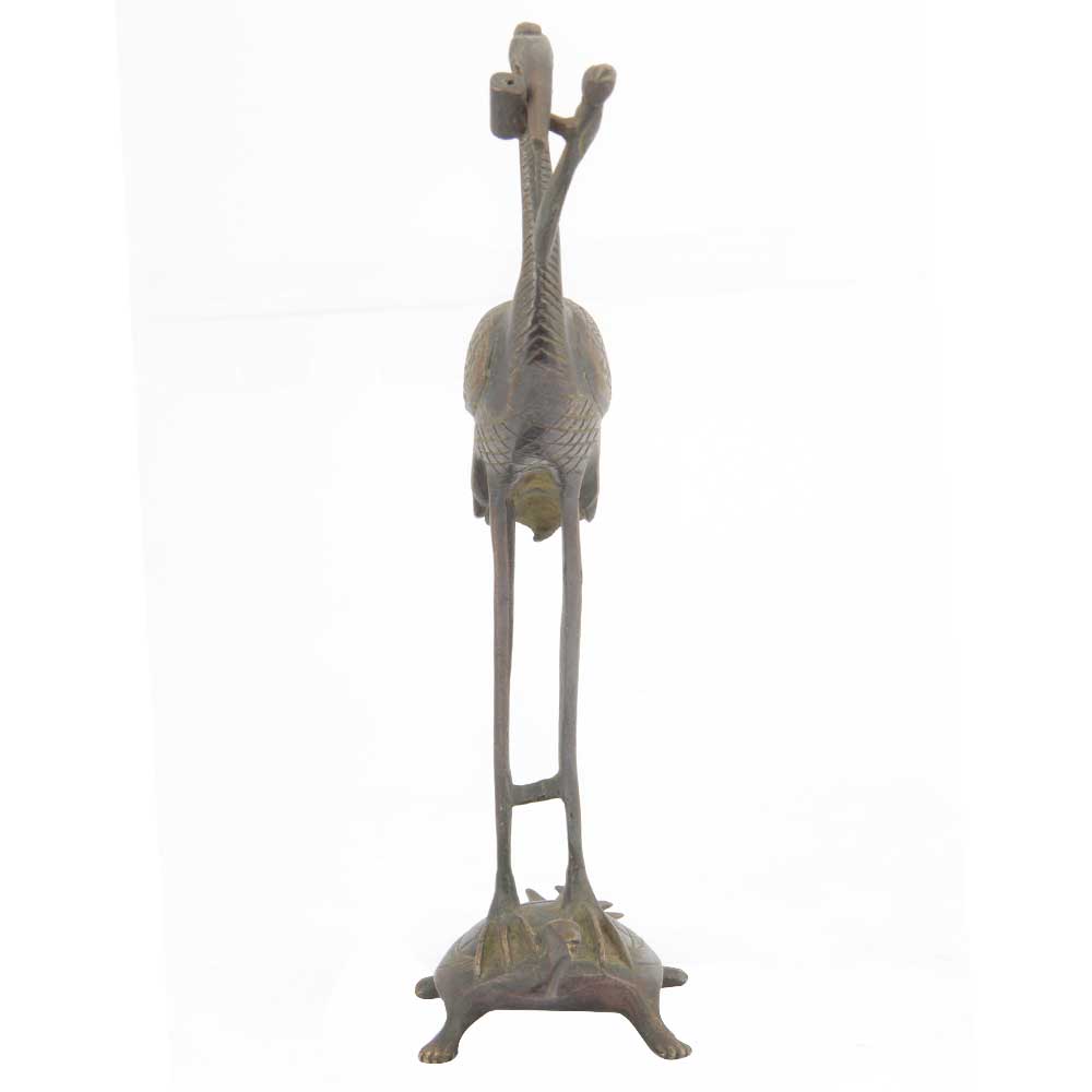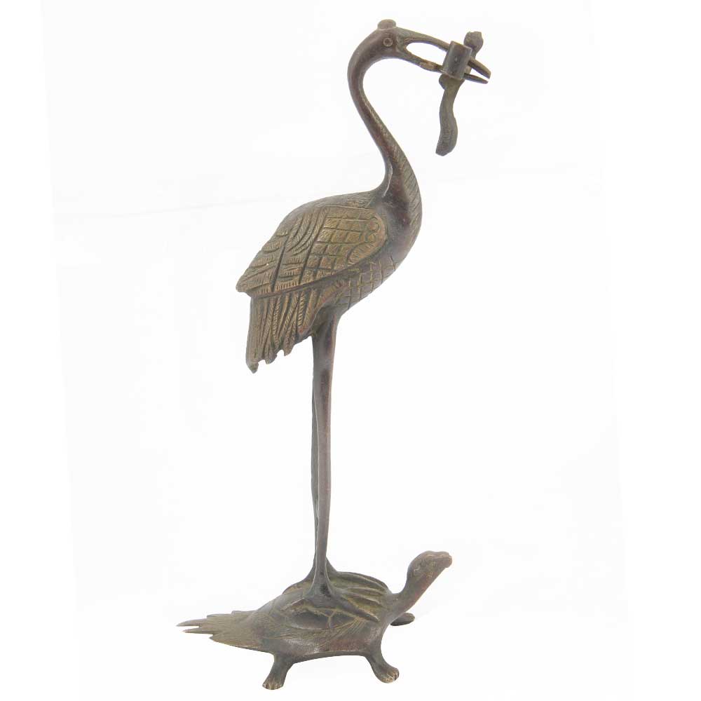 Vintage Bronze Crafted Sculpture Crane Standing on Turtle