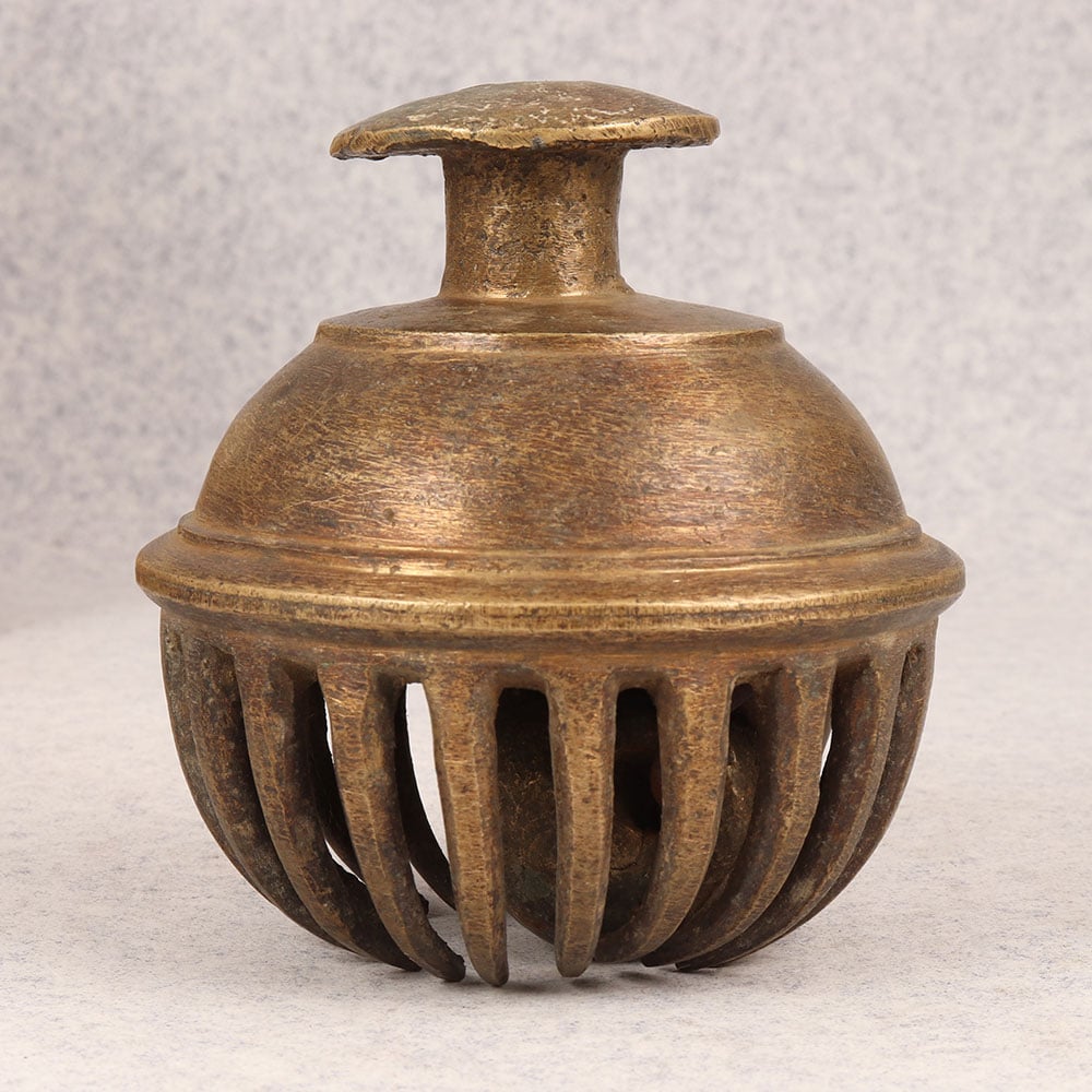A Vintage Bell Metal Elephant Bell that is a magnificent piece of artistry handcrafted by skilled Indian artisans. This exquisite bell is crafted from high-quality brass, showcasing the rich heritage of traditional craftsmanship. With its antique brown finish, it exudes an aura of timeless elegance, reminiscent of a bygone era. This bell finds its inspiration in the majestic elephants adorned with ornate decorations, and it serves as a splendid addition to your decor. The intricate detailing captures the essence of Indian culture and craftsmanship, making it a perfect embellishment for homes, offices, restaurants, hotels, or cafes. Its versatility allows it to seamlessly integrate into various settings, enhancing the aesthetic appeal of any space. This bell is not just a decorative piece but also a precious addition to any vintage collection. It carries the legacy of a bygone era, adding a touch of nostalgia to your surroundings. Ideal for gifting, this bell makes for a thoughtful present on special, festive, or auspicious occasions.