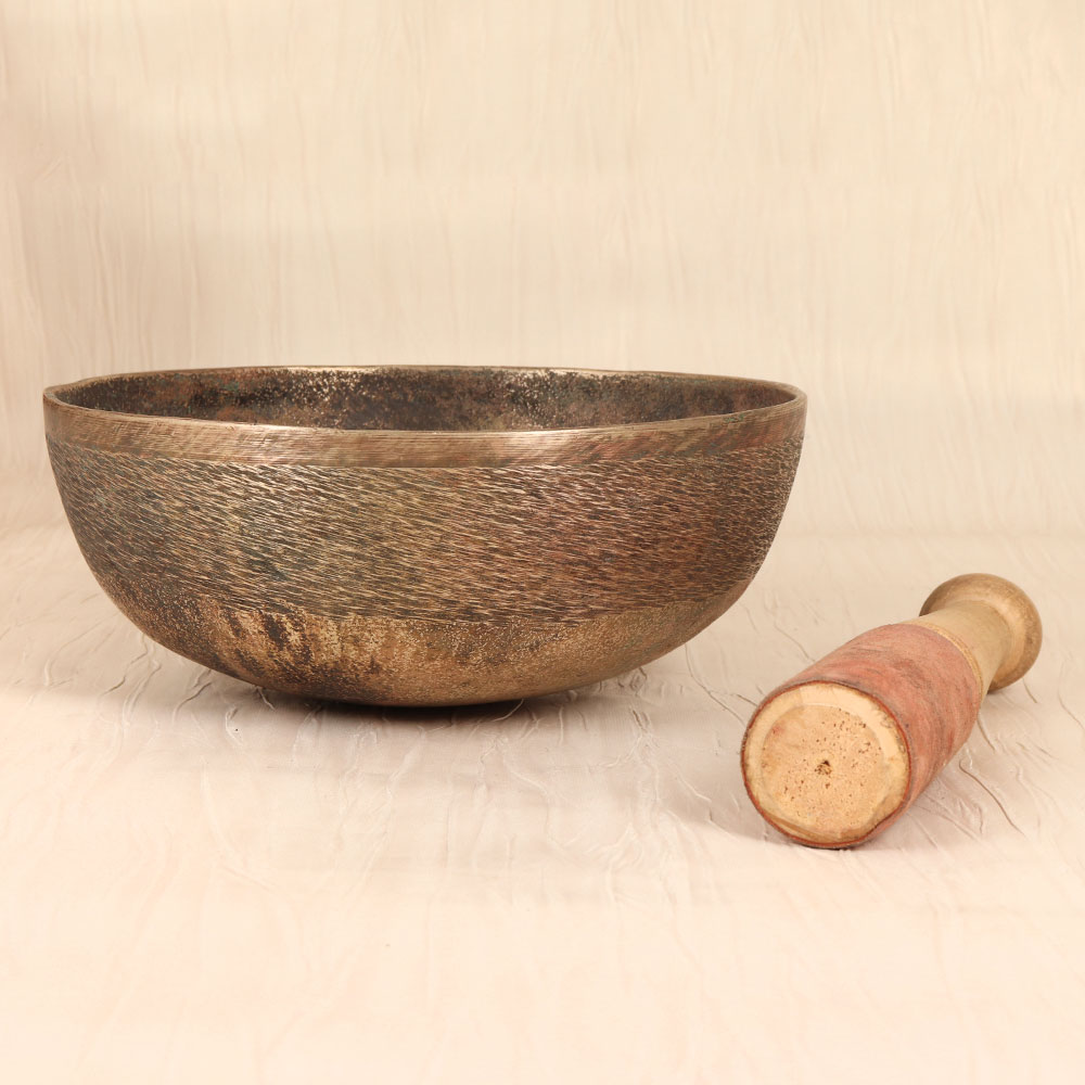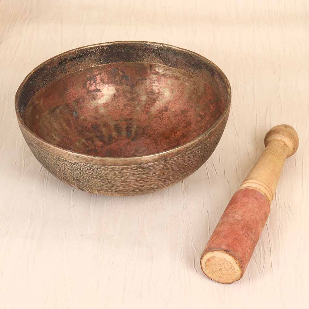 Immerse yourself in the enchanting vibrations of this handcrafted vintage bell metal singing bowl. Forged with time-honored techniques passed down for generations, this sacred instrument invites you to embark on a transformative sonic journey. Unleash the restorative power of this singing bowl and experience the profound benefits of Tibetan sound therapy. As you gently strike the rim, the bowl's hypnotic vibrations wash over you, guiding you into a state of deep relaxation. Let the captivating tones melt away stress, calm the mind, and restore a sense of inner peace. Whether you're a seasoned meditation practitioner or simply seeking to incorporate more mindfulness into your life, this vintage bell metal singing bowl is an invaluable tool. Elevate your daily rituals, enhance your yoga or spa sessions, or create a soothing ambiance in any space. Unlock the ancient wisdom of the Himalayas and let this sacred instrument be your portal to profound healing and self-discovery.