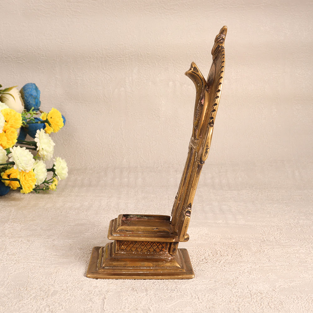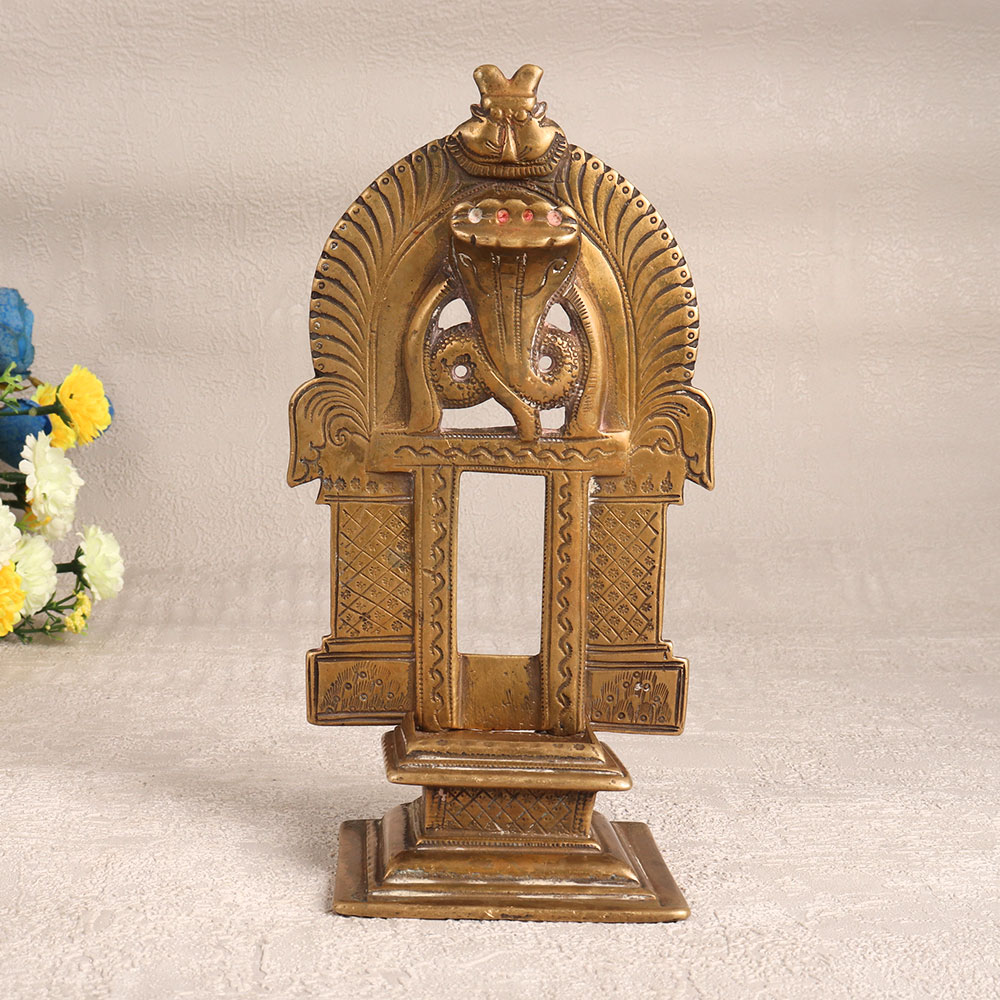 Decorate your home with the timeless elegance of this exquisite Vintage Brass Prabhavali with Base. Crafted with precision and care by highly talented Indian artisans, this stunning piece showcases the rich heritage of brass craftsmanship. Its antique brown finish exudes a warm, rustic charm, making it a captivating addition to any space. This prabhavali is a versatile decorative piece that can enhance the ambiance of your home, office, hotel, cafe, shop, or restaurant. Its intricate design and antique appeal make it a unique choice for those seeking to infuse a touch of traditional aesthetics into their surroundings. Display it proudly as a centerpiece or accent piece to create an alluring focal point. This handcrafted masterpiece isn't just for personal enjoyment, it's also an excellent addition to any vintage collection. Showcase it at exhibitions to share its cultural significance and artisanal excellence with a wider audience. Additionally, this Vintage Brass Prabhavali makes for a thoughtful and cherished gift, ideal for special, festive, or auspicious occasions.