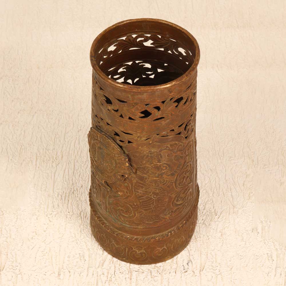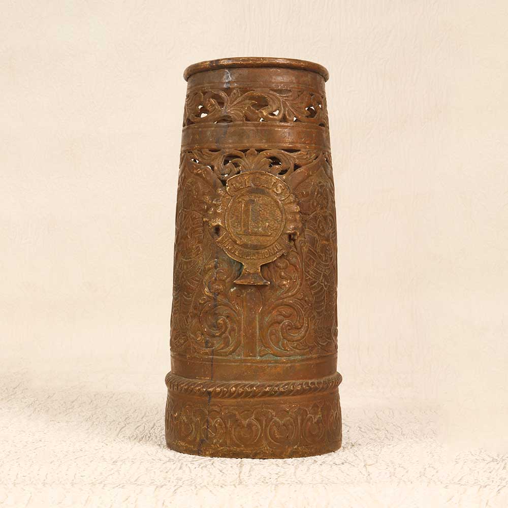 Add a touch of antique charm to your home with this beautiful vintage brass pot. The engraved floral design on its surface brings elegance and sophistication to any space. This pot is an ideal way to add a shabby chic, romantic feel to your home. The vintage styling is perfect for farmhouse, boho, or cottage decor. Use it as a unique planter for your favorite indoor plants and flowers, or fill it with wooden spoons, whisks, and spatulas in your kitchen. With its timeworn patina and floral engravings, this brass pot brings antique beauty to any room. For those looking for statement pieces to liven up their home decor, this vintage brass pot is sure to impress. The detailed engraving gives it an artisanal, handcrafted look that feels special. Let this brass pot become the charming focal point of your kitchen, living room, or patio.