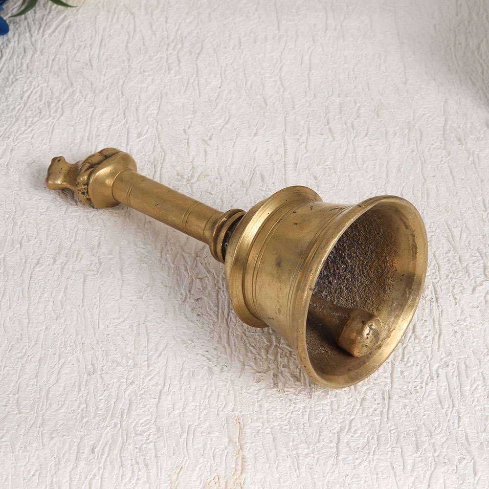 Enhance your home, office, restaurant, hotel, cafe, or shop's ambiance with our exquisite Vintage Brass Temple Bell featuring a stunning Lord Nandi handle. Handcrafted with precision by highly talented Indian artisans, this bell is a testament to their craftsmanship and attention to detail. Made from high-quality brass, it boasts an antique brown finish that adds a touch of timeless elegance to any space. Whether you're seeking a spiritual focal point for your prayer room, a decorative piece for your vintage collection, or a unique gift for your loved ones on special, festive, or auspicious occasions, this bell is the perfect choice. With its intricate design and rich symbolism, it serves both as a symbol of devotion and a captivating decor item. When rung, the melodious sound resonates with a sense of tranquillity, creating a serene atmosphere for prayer and meditation.