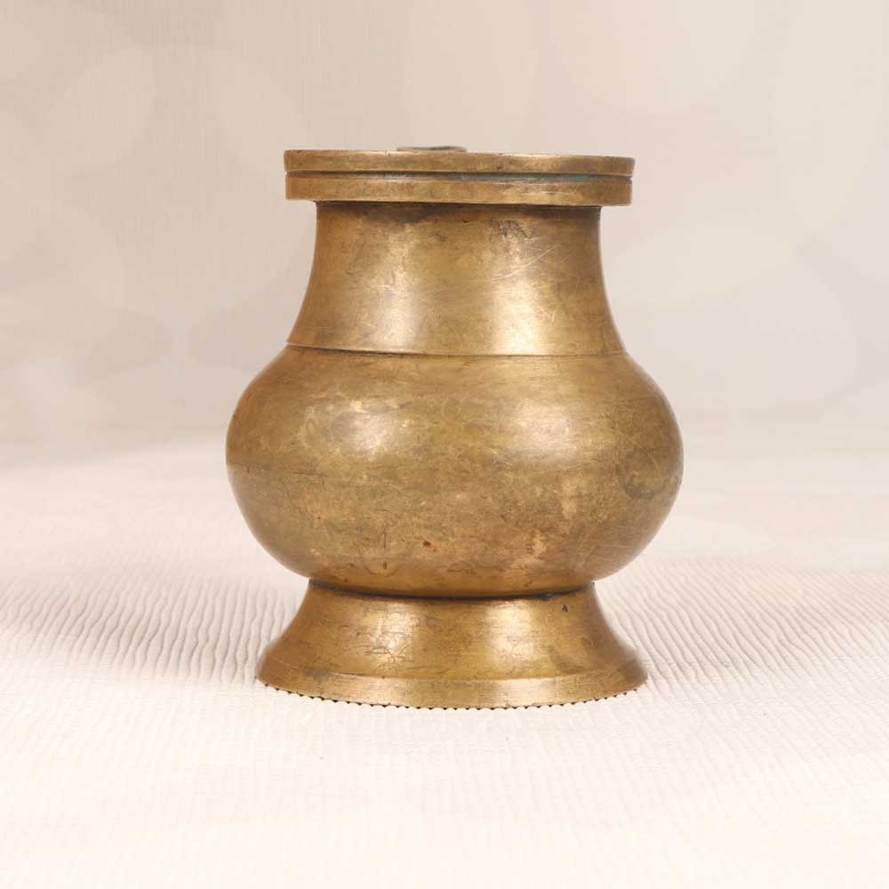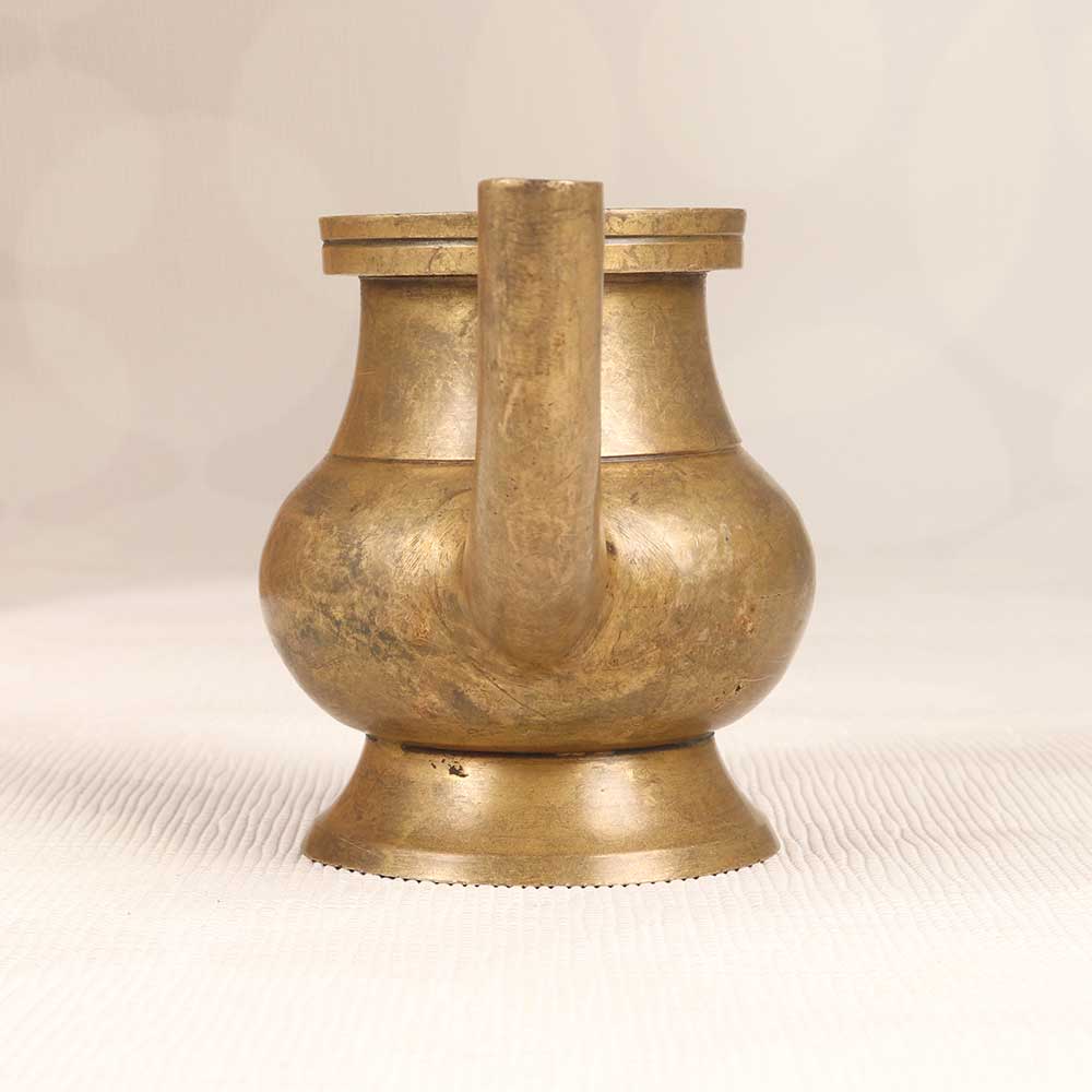 Capture the holy spirit with this vintage brass holy water pot. This stunning pot features intricate etchings and a convenient spout for easy pouring during prayer and ritual. This pot allows you to keep holy water on hand for blessings and purification rituals. The spout makes it easy to dispense during prayer or spiritual ceremony. Beautiful vintage brass construction gives this pot a sacred, timeless quality. For devotees and spiritual seekers who want a special vessel to hold holy water for rituals and prayer, this vintage brass pot is a striking and purposeful choice. The handsome design elevates your sacred space while allowing you to honor traditions and connect on a deeper level during practice.