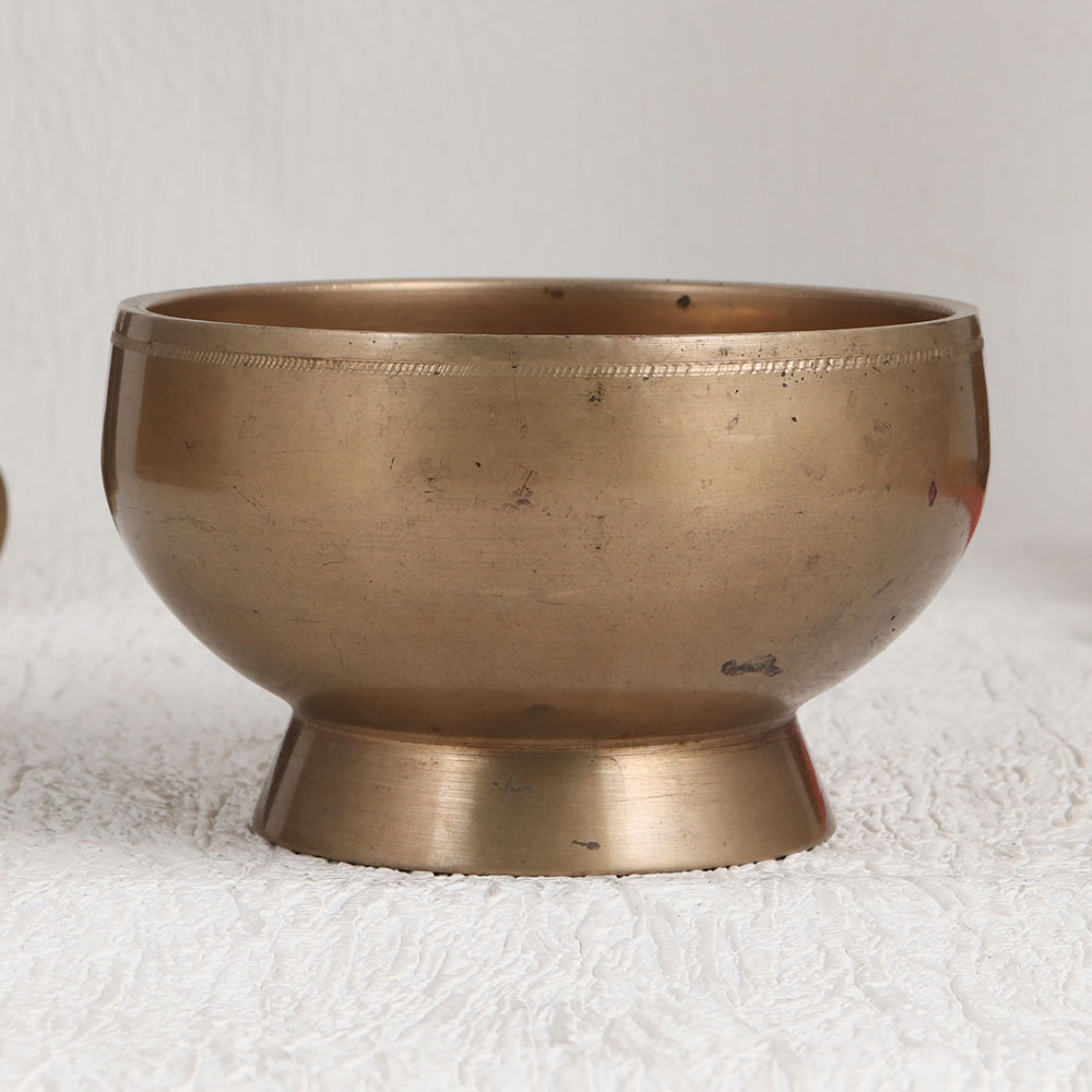 Buy a Vintage Brass Kumkum Bowl online that is a masterpiece meticulously handcrafted by professional Indian artisans in the South Indian Art tradition. This exquisite piece showcases an antique brown finish, adding a touch of rustic elegance to any setting. Crafted with the utmost precision and care, this kumkum bowl is made from high-quality brass, ensuring its durability and lasting beauty. Its versatile design makes it a perfect addition to your home, office, restaurant, hotel, cafe, or shop, where it can serve as a striking decorative element. Alternatively, it can be an integral part of your daily rituals, holding kumkum tilak during prayers and ceremonies. Whether you're a collector seeking to expand your vintage treasures or planning to exhibit this piece's artisanal beauty, our Vintage Brass Kumkum Bowl is a must-have. It also makes for an exceptional gift for your loved ones on special, festive, or auspicious occasions, symbolizing the rich cultural heritage and craftsmanship of India.