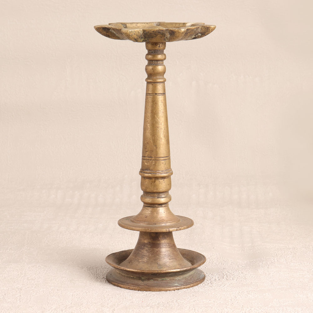 Decorate your home interior with the timeless charm of our exquisite Vintage Brass Oil Lamp. This magnificent piece is adorned with seven intricately crafted jyots (lamps) and is a testament to the rich heritage of Indian craftsmanship. Handmade by talented artisans in South Indian Art, this masterpiece boasts a deep antique brown finish that exudes authenticity. Crafted from high-quality brass, it's not only a visual delight but a functional work of art. The lamp is designed to be lit with mustard oil or ghee, using cotton wicks, just as it has been for generations. Whether placed in your home, office, hotel, cafe, shop, or restaurant, it creates an ambiance of serenity and nostalgia. It serves as a focal point in prayer rooms and adds a touch of vintage elegance to any space. For collectors, this lamp is a prized addition, making it a great exhibit for showcasing. Its versatile nature allows it to be used during daily prayers or auspicious occasions. Moreover, it's a thoughtful gift for your loved ones during special, festive, or auspicious moments, symbolizing the warmth and tradition of India's cultural heritage.