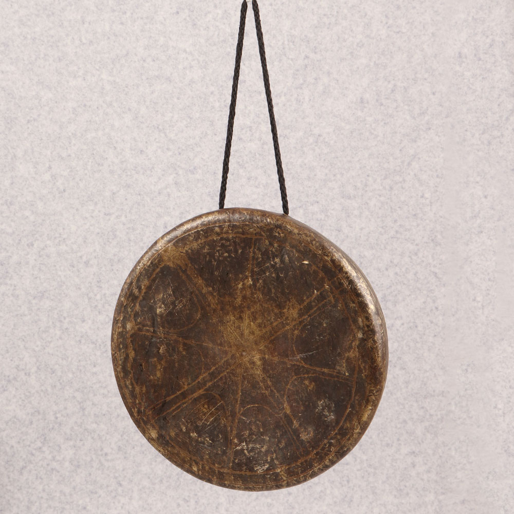 Adorn your living room with the timeless charm of our Vintage Bell Metal Gong that is a masterpiece crafted by skilled artisans in the rich traditions of Tibetan art. The gong, made from high-quality bell metal, exudes an air of antiquity with its stunning antique brown finish. Designed with a convenient string for hanging, it effortlessly becomes a striking focal point in any setting – be it your home, office, restaurant, hotel, or cafe. Beyond its aesthetic appeal, this handcrafted gong serves various purposes. Its melodious tones make it perfect for meditation, creating a serene ambiance. As a unique decorative piece, it adds a touch of history and cultural richness to your surroundings. This vintage gem is not just a decor item, it is a conversation starter and a delightful addition to any vintage collection. Moreover, this exquisite bell metal gong makes for an exceptional gift for your loved ones on special, festive, or auspicious occasions.