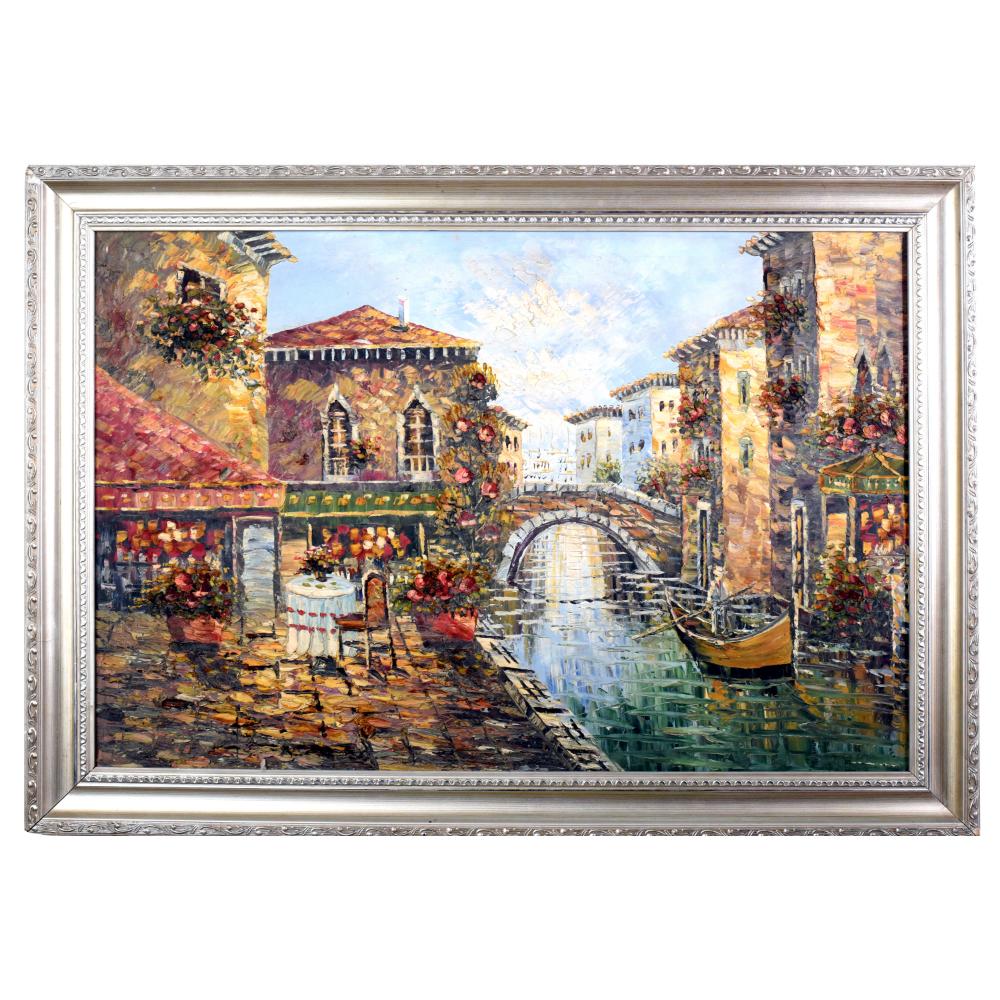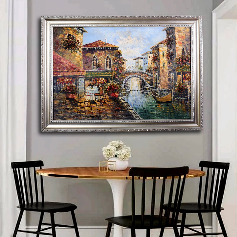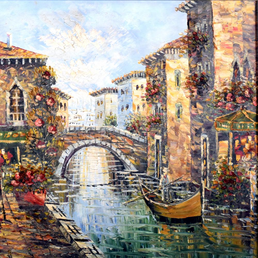 - Handcrafted vintage canvas oil painting of a serene Venice City