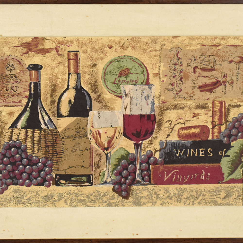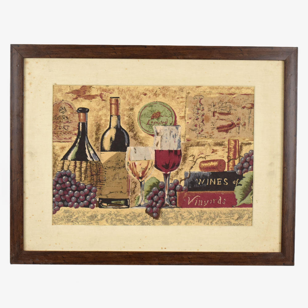 Add a touch of rustic elegance to your interiors with this cloth painting on hardboard depicting wine bottles, glasses, and grapes, framed in a classic wooden border. The composition captures the essence of vineyard life, showcasing bottles of red wine, filled glasses, bunches of grapes, and vintage-style labels that evoke old-world charm. The warm earthy tones and fine detailing create a sophisticated aesthetic, making it an excellent addition to kitchens, dining spaces, wine cellars, or living rooms. The artwork beautifully blends artistic flair with a timeless theme of celebration and indulgence, making it not just decor but also a statement piece. Crafted on cloth and mounted on durable hardboard, it ensures longevity while retaining its vibrant appeal. Perfect for wine lovers, collectors, or those looking to enhance their home with vineyard-inspired art, this painting also makes a thoughtful gift.