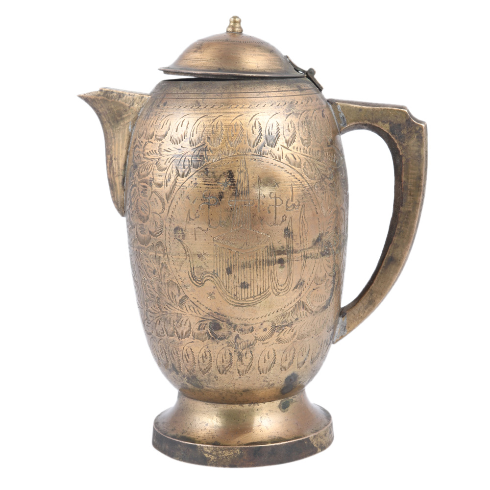 The incredibly crafted and exquisite decor item is a Vintage collectable engraved jug. The detailing and patterns on the same are unmatched and unparalleled. The Vintage collectable engraved jug has been handcrafted to feature a bronze and decorative element that helps to showcase an artful level of detail and impact. Pair this stunning decor item with a modern silhouette like a contemporary table lamp to achieve the perfect decor. It helps to complement any interior design plan with ease.