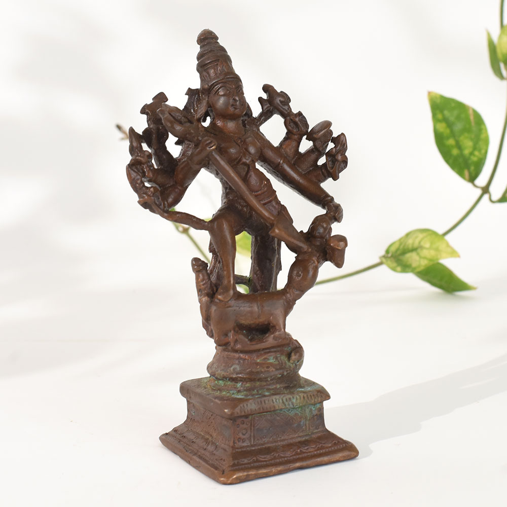 - Traditional South Indian copper goddess idol in warrior form