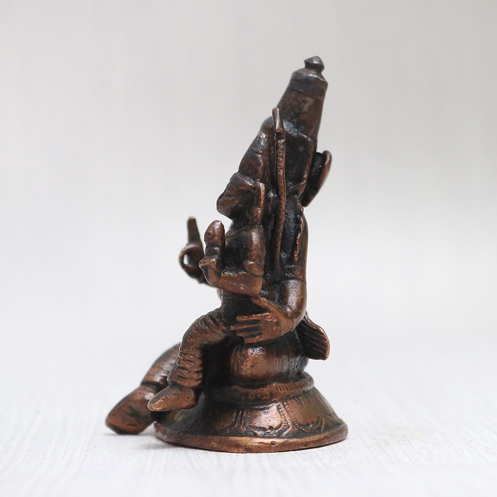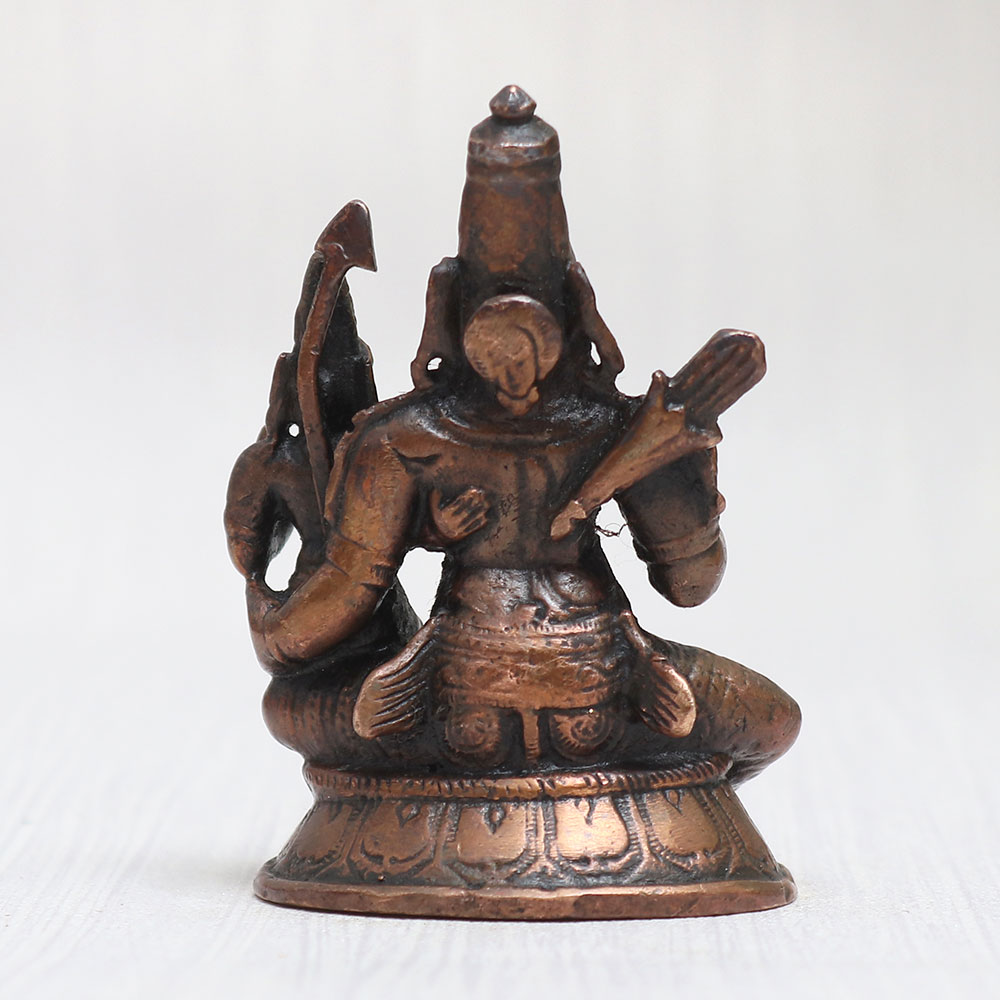 Buy a vintage copper statue of Lord Narayan with his beloved consort, Goddess Lakshmi. Handcrafted by talented Indian artisans using high-quality copper, this exquisite masterpiece captures the divine essence of these revered deities. Lord Narayan, also known as Lord Vishnu, is depicted in a seated posture, exuding an aura of tranquillity and serenity. Goddess Lakshmi graces his left lap, symbolizing abundance, prosperity, and beauty. This stunning Indian god statue is a perfect addition to your home, office, restaurant, hotel, or cafe temple. It effortlessly enhances the ambience with its timeless charm and spiritual significance. The statue's intricate craftsmanship and attention to detail make it ideal for collections, exhibitions, or simply as an ornamental centerpiece. Furthermore, this sacred artefact serves as an auspicious gift for your loved ones on special, festive, or auspicious occasions, symbolizing blessings, luck, and divine protection. Explore our exclusive collection of Indian god statues and buy idols online to discover more divine treasures for your home mandir.