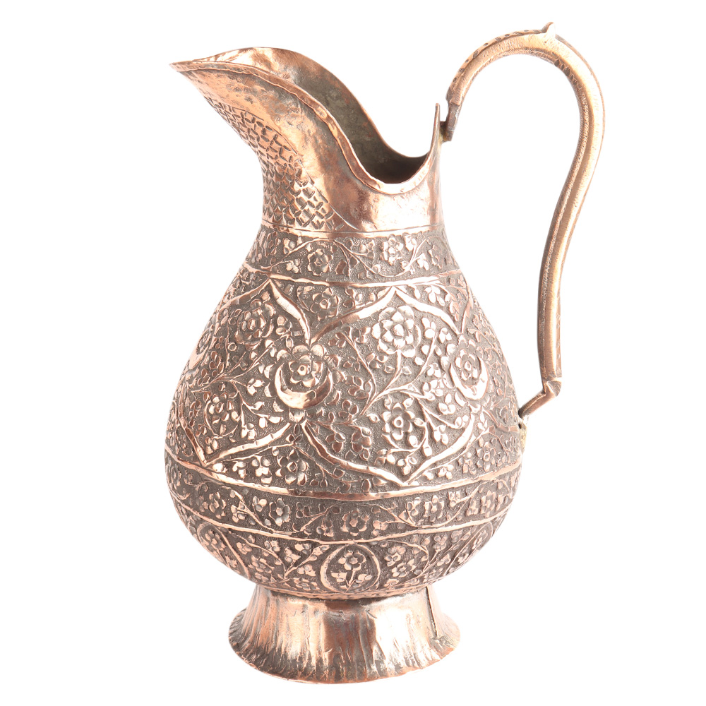 The vintage used copper jug carved Islamic art is the perfect choice for home decor. It instantly enhances the beauty of your limited spaces and makes for a stunning gift for couples on their wedding anniversary.�The amazing vintage used copper jug carved Islamic art is unique and special in its entirety. Any other modern artwork hardly matches the elegance of this. It also makes for a great heirloom item.�