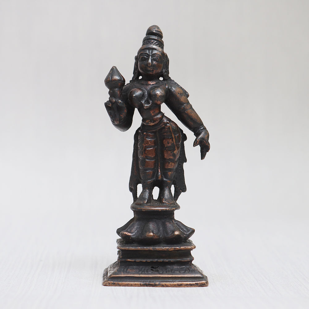 Buy a Hindu Goddess Maa Parvati Copper Statue online and get a hassle free delivery at your doorstep. Handcrafted with precision and artistry by highly skilled and experienced Indian artisans, this vintage masterpiece is sculpted from high-quality copper, radiating an aura of elegance and spirituality. Standing gracefully, Parvati's serene expression and intricately carved details mesmerize all who behold her divine presence. This enchanting statue serves as a remarkable addition to any space, be it your home, office, restaurant, hotel, cafe, or temple. It effortlessly enhances the ambiance, exuding a sense of tranquillity and reverence. Whether for personal collection, exhibition, or decoration, this handmade masterpiece is a testament to the rich cultural heritage of India. The Maa Parvati Copper Statue is not only a symbol of devotion but also an ideal auspicious gift for your loved ones on special, festive, or auspicious occasions. Explore the convenience of purchasing idols online, as this exquisite online murti allows you to effortlessly bring the divine grace of Goddess Parvati into your life and spaces.