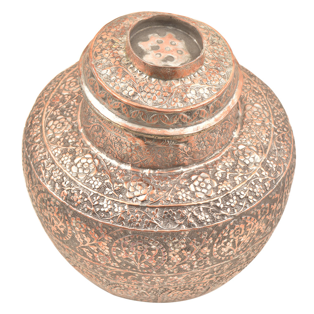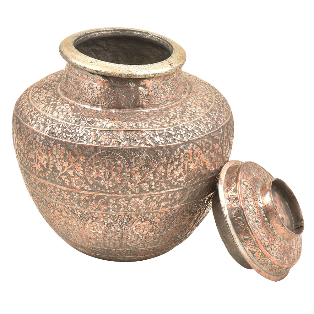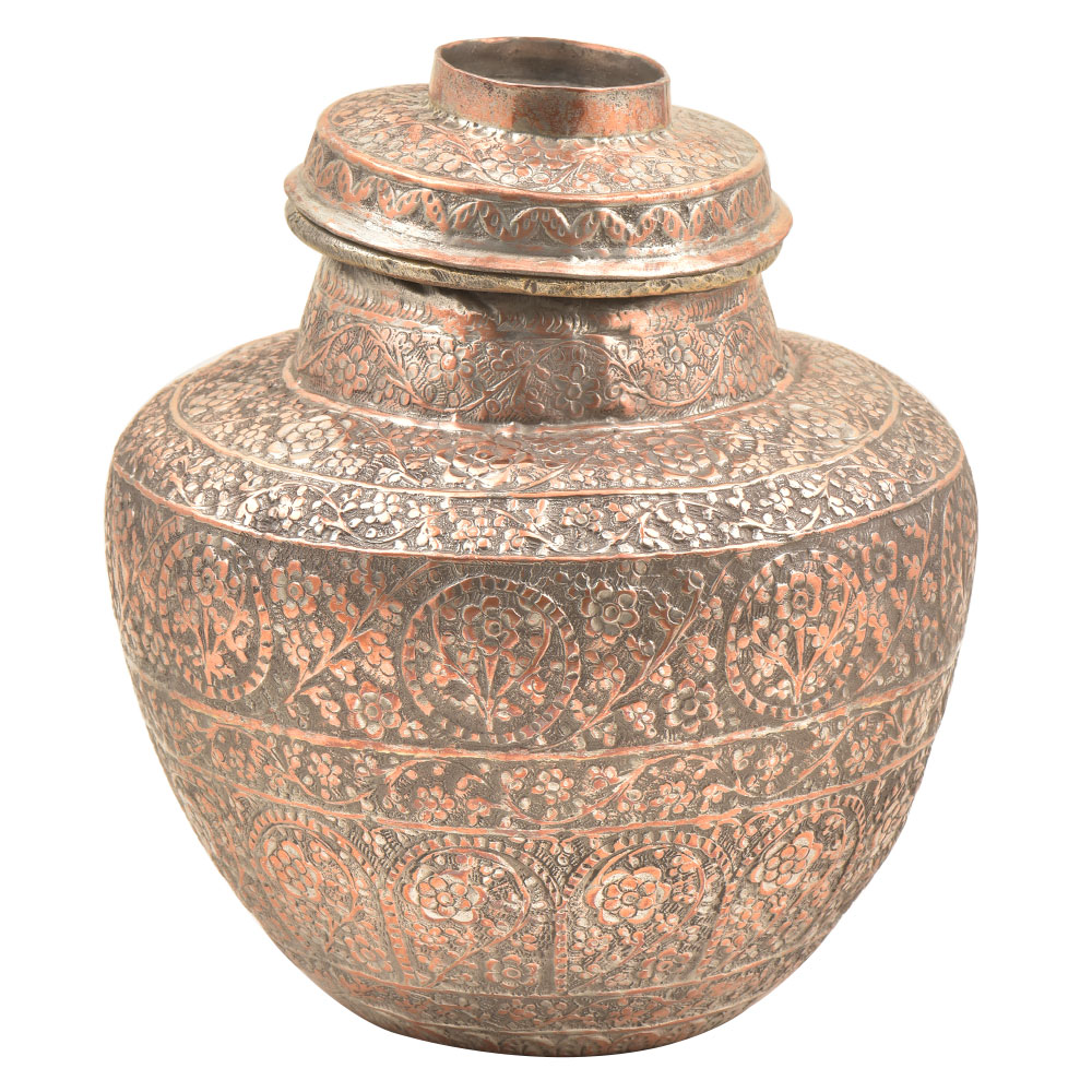 • Vintage Copper Repousse Jar Lidded Pot Vase For Storage