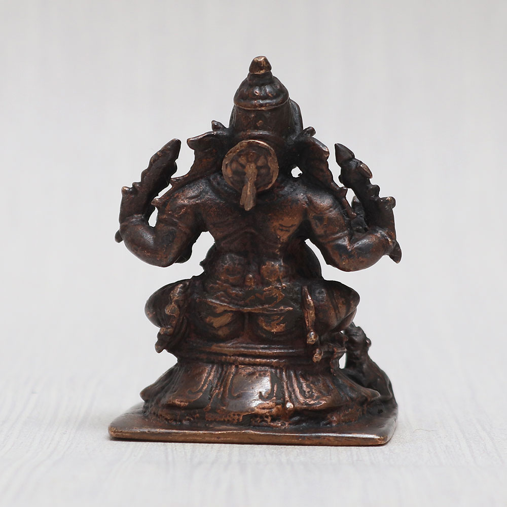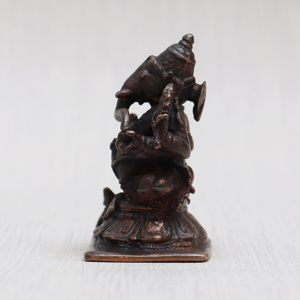 Buy a Copper Ganesh Ji ki murti online that is lovingly handcrafted by skilled Indian artisans using high-quality copper. This divine creation showcases Lord Ganesha, the beloved elephant-headed deity, accompanied by his faithful vahana, the mushak, seated gracefully in front of him. The statue exudes a vintage-style finish, adding a touch of elegance to any space. Ideal for your prayer room at home, office, restaurant, cafe, or shop, this Ganesh ji idol boasts captivating detailing that makes it perfect for exhibition, decoration, and collection. Moreover, this Ganpati murti for the car also makes for an excellent gift for loved ones on special, festive, or auspicious occasions, carrying blessings of prosperity and success.