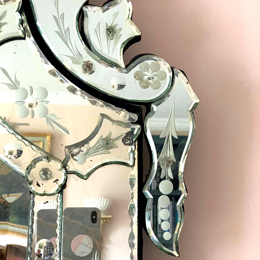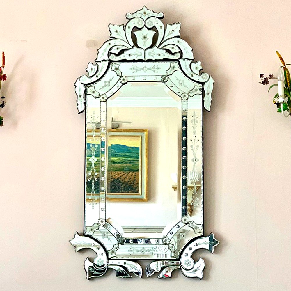 This Venetian mirror showcases the intricate skills of Indian artisans inspired by centuries-old European glasswork. All mirrors are handmade — never machine-made — ensuring true artistry and exclusivity.