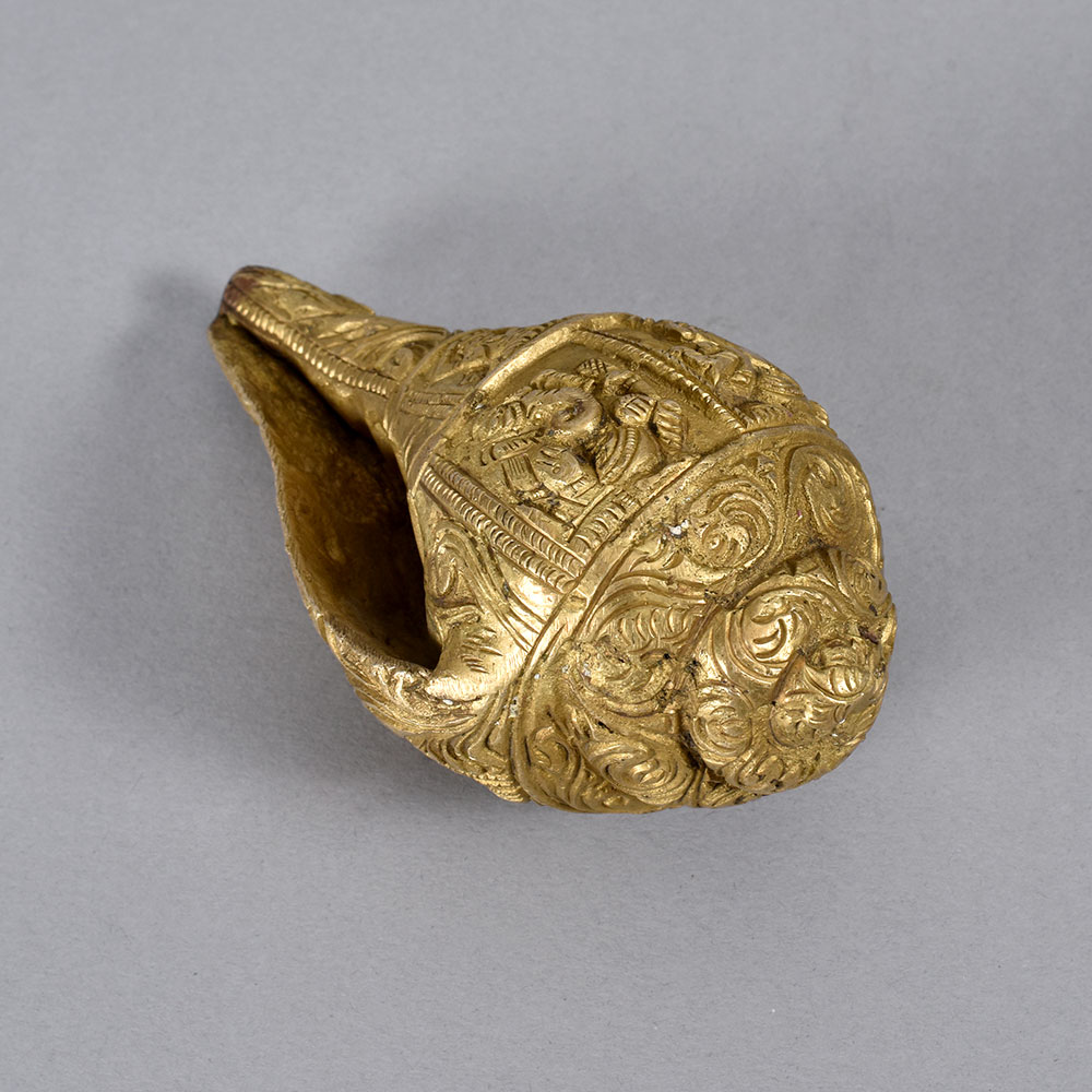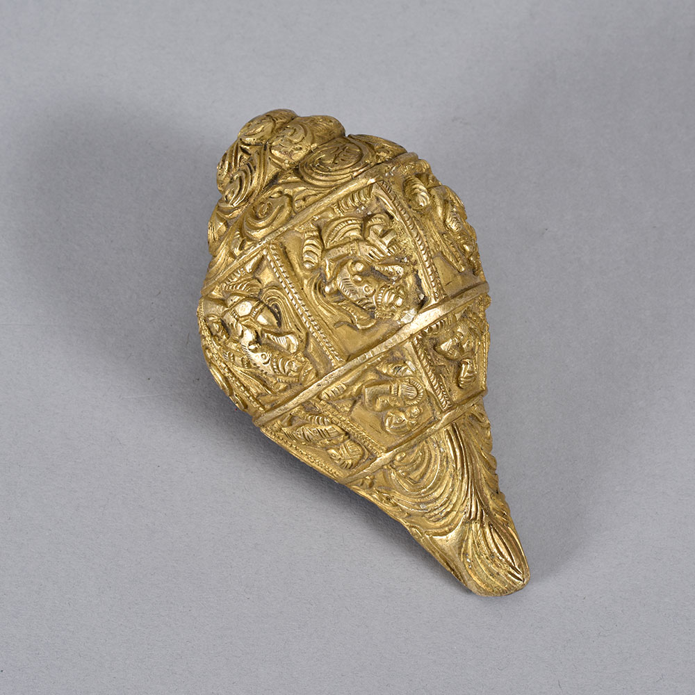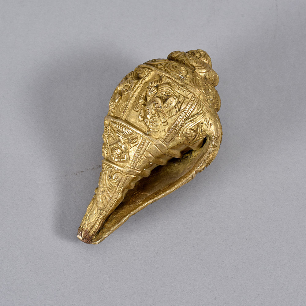 This vintage brass Conch Shankh Shell is a stunning piece that brings the mystical powers of the conch to your sacred space. Crafted from high-quality brass, this shell features intricate engraving that gives it an antique, timeless look. When blown, it produces a deep, resonant tone that can be used to aid in meditation, prayer, and spiritual practice. The conch shell has long been revered in Hindu and Buddhist traditions as a symbol of purity, auspiciousness, and enlightenment. Placing this brass Shankh Shell in your prayer room or meditation space can help you connect with the divine, clear your mind, and deepen your spiritual practice. Its compact size makes it easy to display on an altar or mantle, filling your home with positive, uplifting energy. Whether you're an experienced spiritual seeker or simply someone looking to add a touch of ancient wisdom to your decor, this brass Conch Shankh Shell is a beautiful and meaningful addition to any sacred space. Treat yourself or give it as a thoughtful gift to a loved one on their spiritual journey.