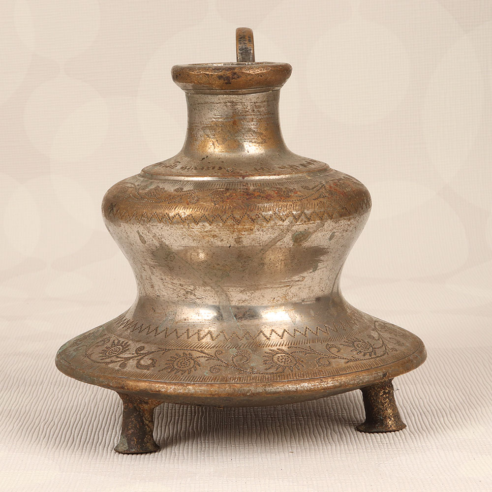 This Vintage Brass Hookah Base with engraving is a symbol of exquisite craftsmanship and cultural richness. Handmade by highly talented Indian artisans, this captivating piece is crafted from high-quality brass, showcasing the artistry and dedication of its creators. The base's three legs provide a stable foundation, elevating its elegance to new heights. Adorned with intricate engravings and featuring an antique brown finish, this hookah base exudes vintage charm, transporting you to a bygone era of opulence. Versatile and captivating, it serves as an ideal indoor flower pot, bringing nature's beauty into your home, office, restaurant, hotel, or cafe. Its aesthetic allure makes it a delightful addition to any space, enhancing the ambiance with a touch of heritage and sophistication. This vintage brass hookah base isn't just a decorative piece; it's a collector's item, appealing to enthusiasts of classic design. A thoughtful and meaningful gift, it holds the power to commemorate special, festive, or auspicious occasions, creating lasting memories for your loved ones.