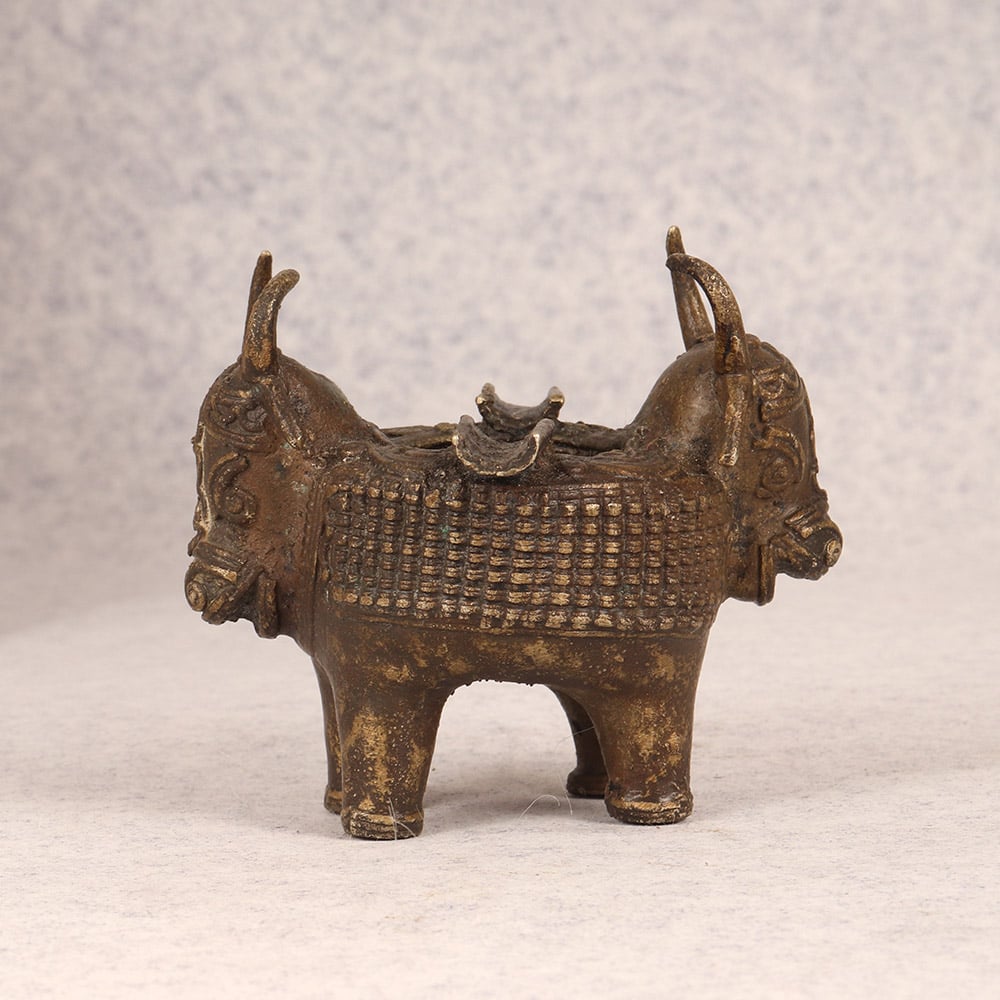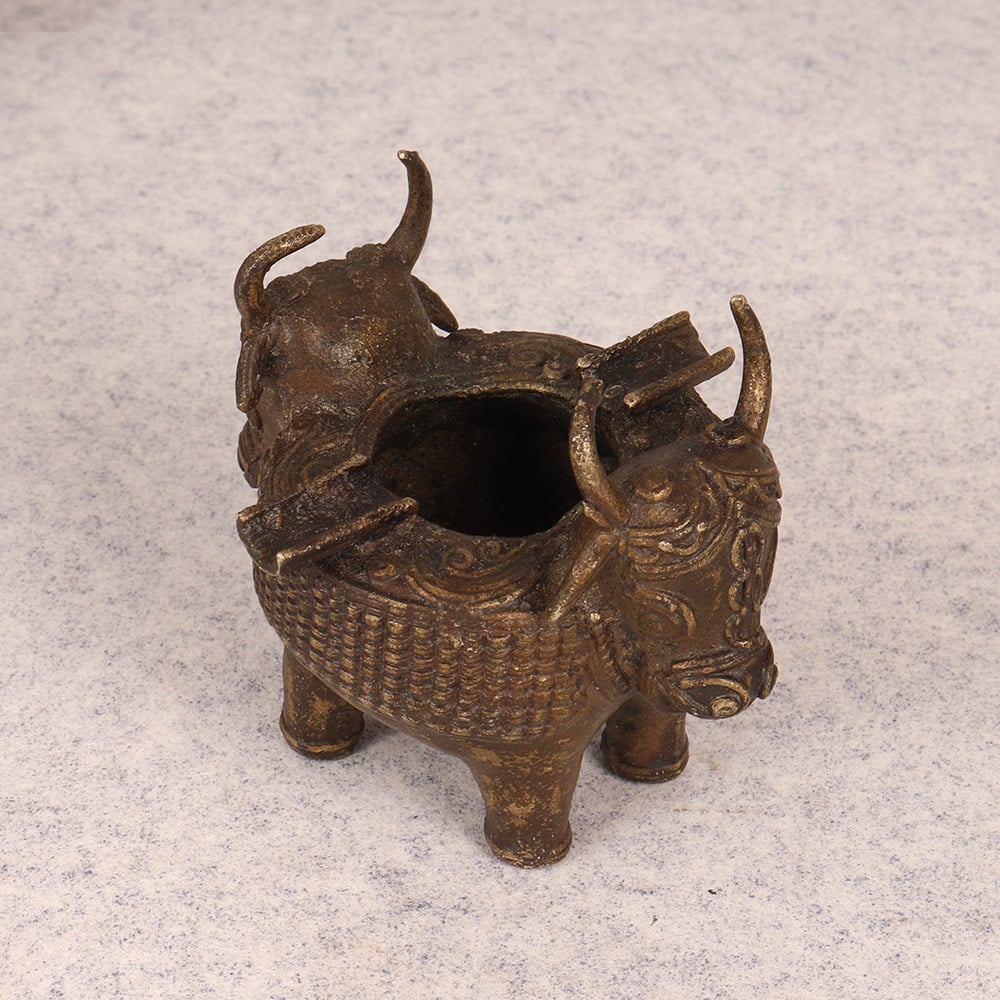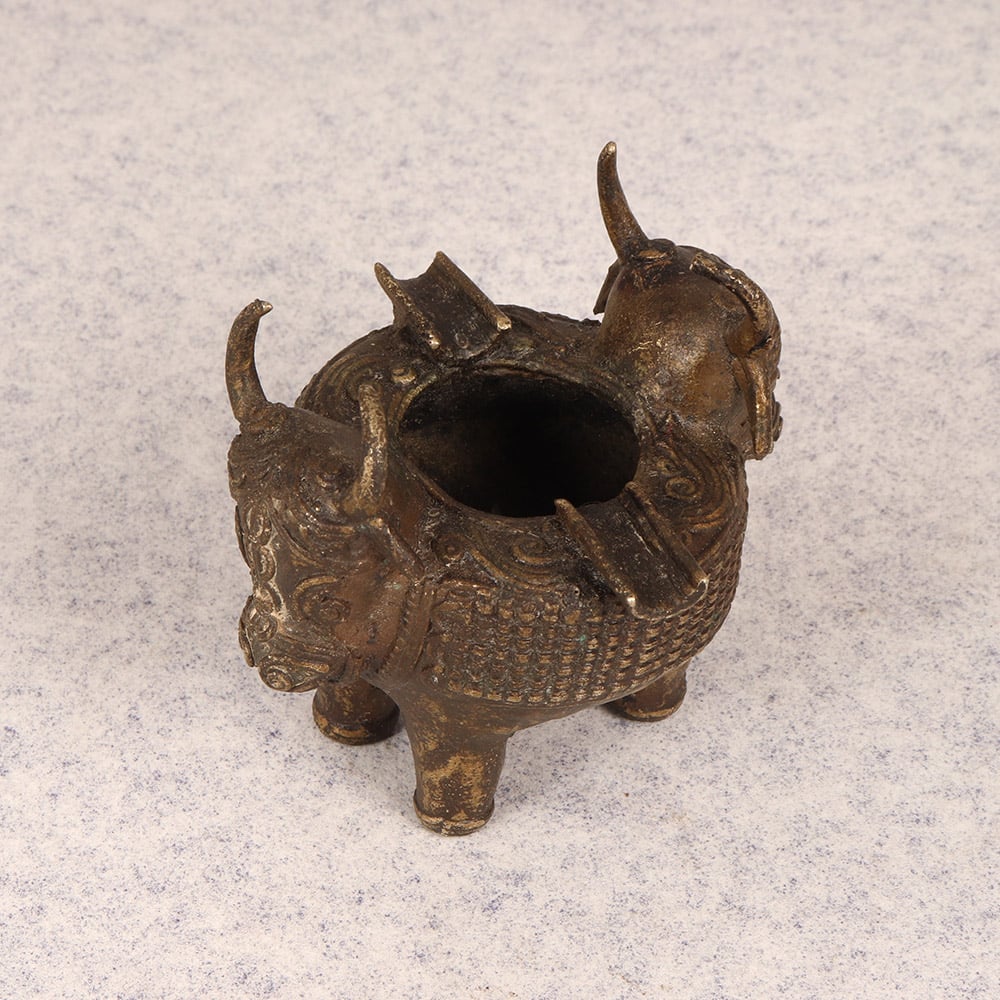 Elevate your smoking experience with this captivating Vintage Brass Ashtray. Crafted with meticulous attention to detail, this ashtray is a true work of art that will transform your space. This vintage brass ashtray is more than just a functional accessory - it's a statement piece that will elevate your personal style. The intricate tribal art design of the bull's head commands attention, while the solid brass construction ensures it will withstand the test of time. Whether you're a cigar aficionado or simply appreciate fine craftsmanship, this ashtray is sure to become a cherished addition to your home. Imagine the compliments you'll receive as guests admire the stunning visual appeal of this ashtray. It's the perfect blend of form and function, allowing you to indulge in your smoking rituals with a touch of vintage flair. Elevate your everyday moments and create a sophisticated ambiance with this captivating Vintage Brass Ashtray.
