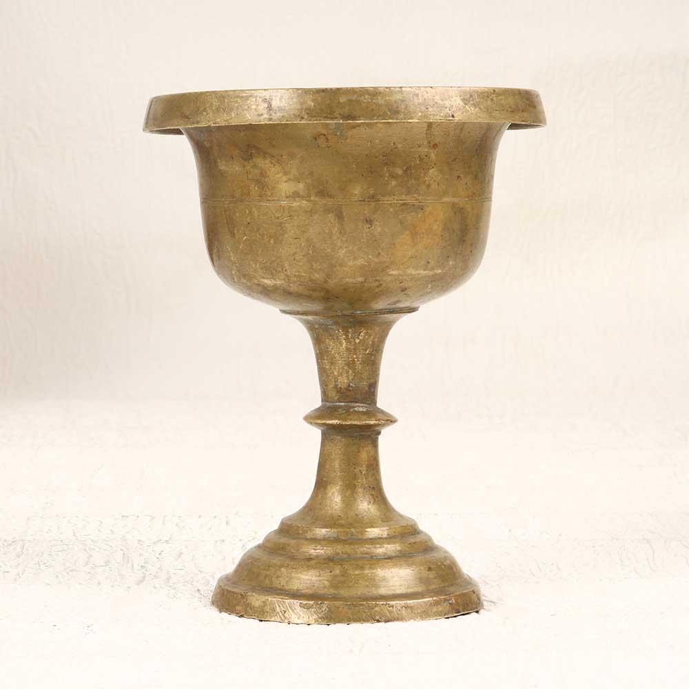 Transport yourself to ancient times with this stunning vintage brass holy cup. Crafted with care, this cup exudes history and spirituality with its intricate detailing and aged patina. Recreate sacred rituals with this vintage brass cup, perfect for holding water, milk, flowers or any offering to the gods. The vintage finish gives it an antique, timeworn look that feels like an artefact from centuries ago. This cup is a must-have for those looking to add old-world charm to their home shrines and pooja rooms. Its vintage styling allows you to honour tradition and connect with the past during your regular rituals or special occasions. Give your home a touch of history with this brass holy cup.