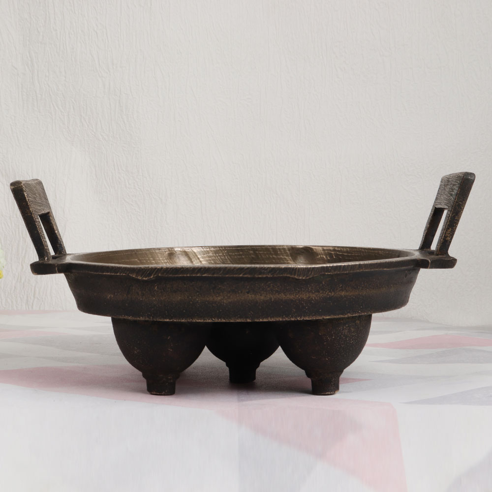 Buy a Vintage Brass Idli Maker online that is a true masterpiece in an antique brown finish. Handcrafted by highly skilled and experienced Indian artisans, this piece embodies the rich heritage of South Indian artistry, making it a unique and exquisite addition to your surroundings. Crafted from high-quality brass, it not only showcases unparalleled craftsmanship but also exudes an aura of nostalgia. Featuring two gracefully designed handles, this idli maker brings the spirit of tradition to life. Its antique brown finish adds a rustic allure, making it a versatile choice for enhancing the ambiance of your home, office, restaurant, hotel, cafe, or shop. However, due to its vintage nature, we recommend primarily using it for decoration, transforming any space into a visual masterpiece. This vintage brass idli maker is a coveted piece for collectors, a tribute to tradition, and a symbol of artistry. It also serves as an impeccable gift for your loved ones on special, festive, or auspicious occasions.