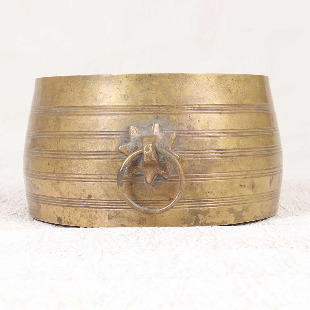 Add a touch of timeless elegance to your home with the vintage brass planter. This stunning planter crafted from brass features a classic design reminiscent of ancient South Indian art that will infuse your space with exotic charm. With its exotic design harkening back to historic South Indian artistic traditions, this vintage brass planter makes a striking decorative accent for any room. The brown patina finish and solid brass construction give it an antiqued, weathered appearance that feels like a treasured antique. Place it on your coffee table, bookshelf, or plant stand to add a touch of old-world allure to your home. Give your indoor garden a stylish home with this brass planter inspired by the rich artistic heritage of South India.