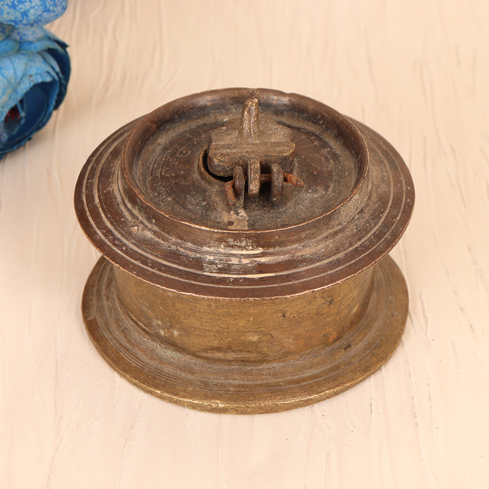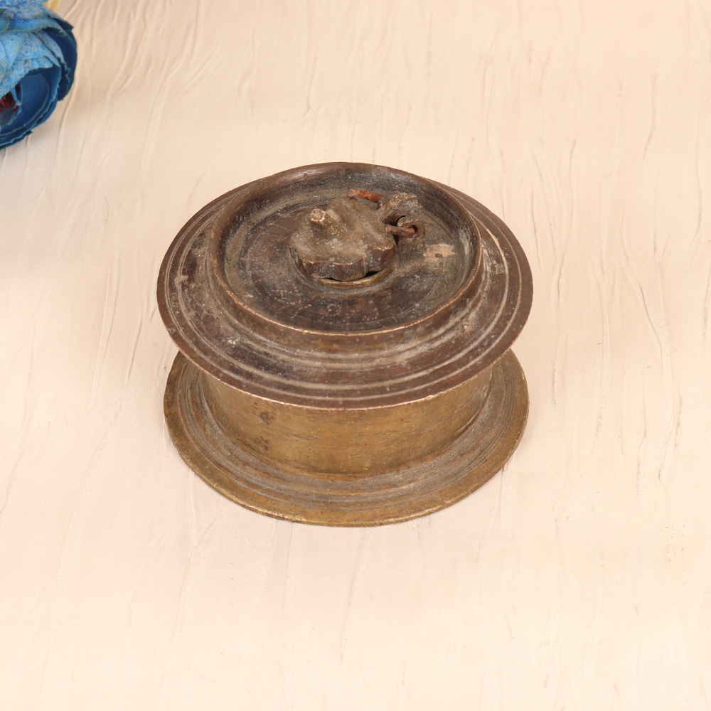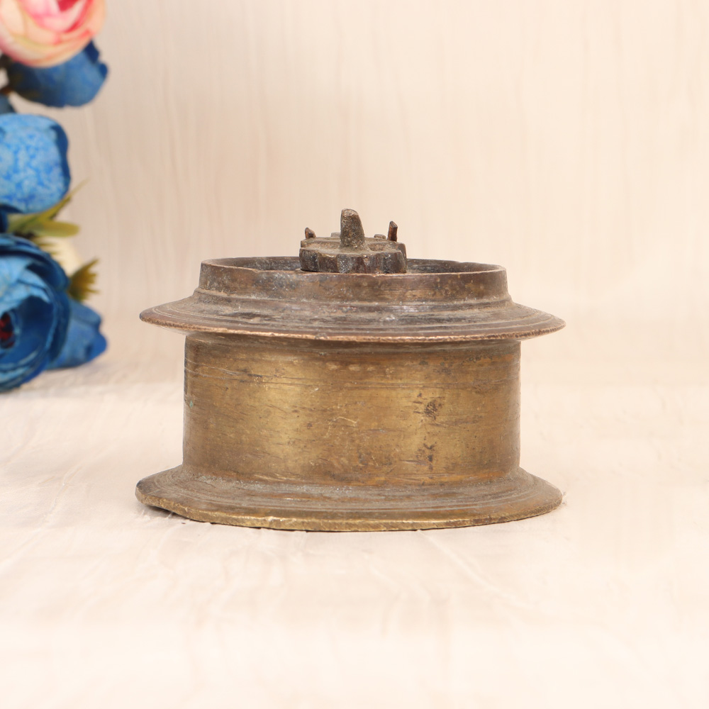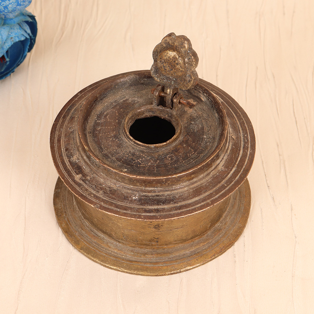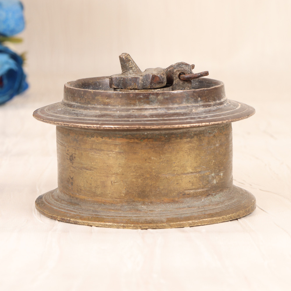 Discover the captivating allure of a bygone era with this exquisite vintage brass inkpot from Rajasthan. A true testament to the region's rich cultural heritage, this decorative piece effortlessly blends form and function, adding a touch of refined elegance to any space. Infuse your home or office with the warm, inviting ambiance of a bygone era. This vintage brass inkpot is more than just a decorative item – it's a testament to the enduring craftsmanship and rich cultural heritage of Rajasthan. Display it proudly on your desk, bookshelf, or entryway, and let it transport you to a world of timeless sophistication. Whether you're a vintage enthusiast, a lover of Indian art and design, or simply someone seeking to add a touch of refined charm to your space, this brass inkpot is the perfect addition to your collection. Elevate your decor and immerse yourself in the captivating allure of Rajasthan's artistic legacy.