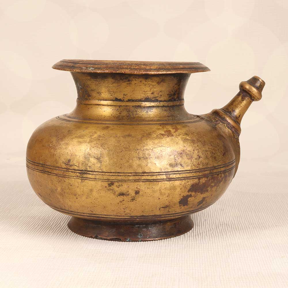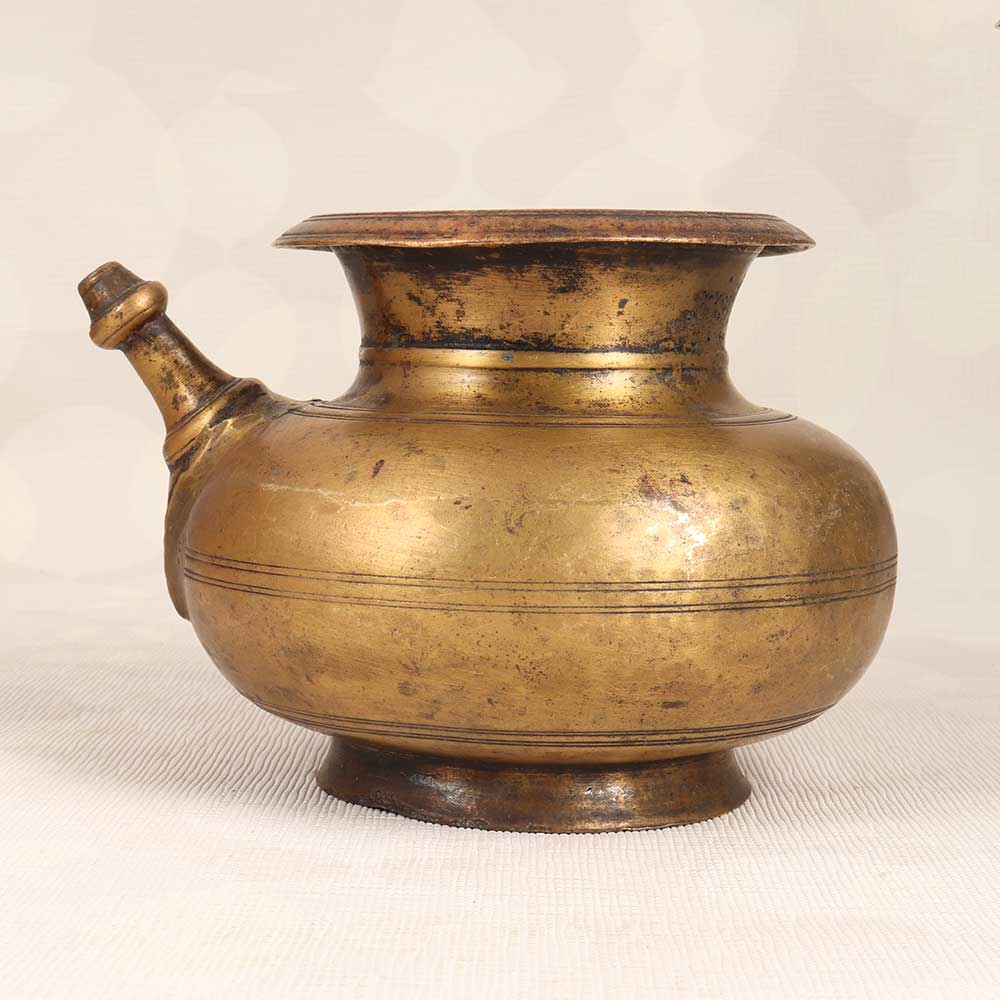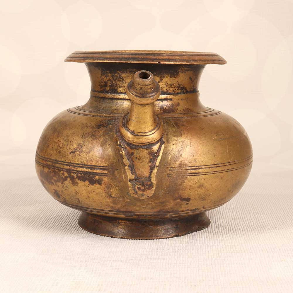 Transport yourself back to ancient times with this beautifully crafted vintage brass holy water pot. Perfect for adding ambience and elegance to your home decor, this pot features delicate detailing and a convenient spout for easy pouring. Use it to hold fresh flowers on your dining table or as part of a spiritual ritual to cleanse your home and invite positive energy. With its timeless design, this brass pot makes a meaningful addition to any space. Bring the allure of ancient holy rituals to your home with this special brass water pot. Display it proudly to add warmth and character to your living space. As both a decorative and spiritual piece, this pot connects you to cultural traditions in a truly unique way. For those looking to add an exotic, mystical touch to their home decor, this vintage pot beautifully captures the essence of an ancient civilization. Let its earthy elegance elevate your space.