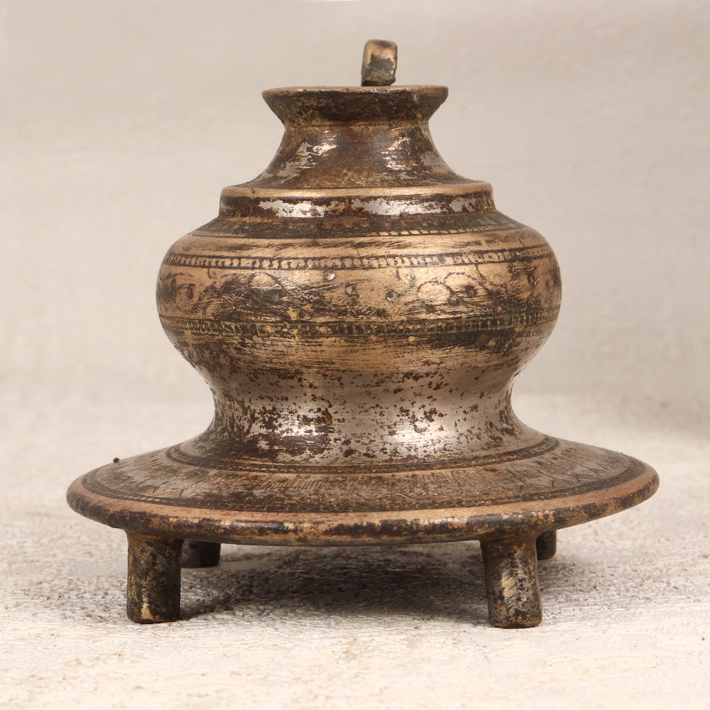 This Vintage Brass Hookah Base with 4 Stands is a majestic fusion of heritage and craftsmanship. Meticulously handcrafted by highly talented Indian artisans, this exquisite piece is a testament to their dedication and expertise in working with high-quality brass. The brass surface boasts intricate engravings, showcasing a harmonious blend of traditional design and vintage aesthetics. The vintage finish lends an aura of nostalgia, transporting you to an era of opulence and elegance. The four stands provide stability, enhancing both the visual appeal and functionality of the hookah base. Versatile in its application, this masterpiece is a striking addition to any setting, be it your home, office, restaurant, hotel, or cafe. Beyond its original purpose, the Vintage Brass Hookah Base transforms into a unique indoor flower pot, adding a touch of greenery to your space. Elevate your décor with this multifunctional artefact that seamlessly blends tradition and contemporary style. An ideal addition to any vintage collection, this hookah base also makes for a thoughtful and sophisticated gift for your loved ones on special, festive, or auspicious occasions.