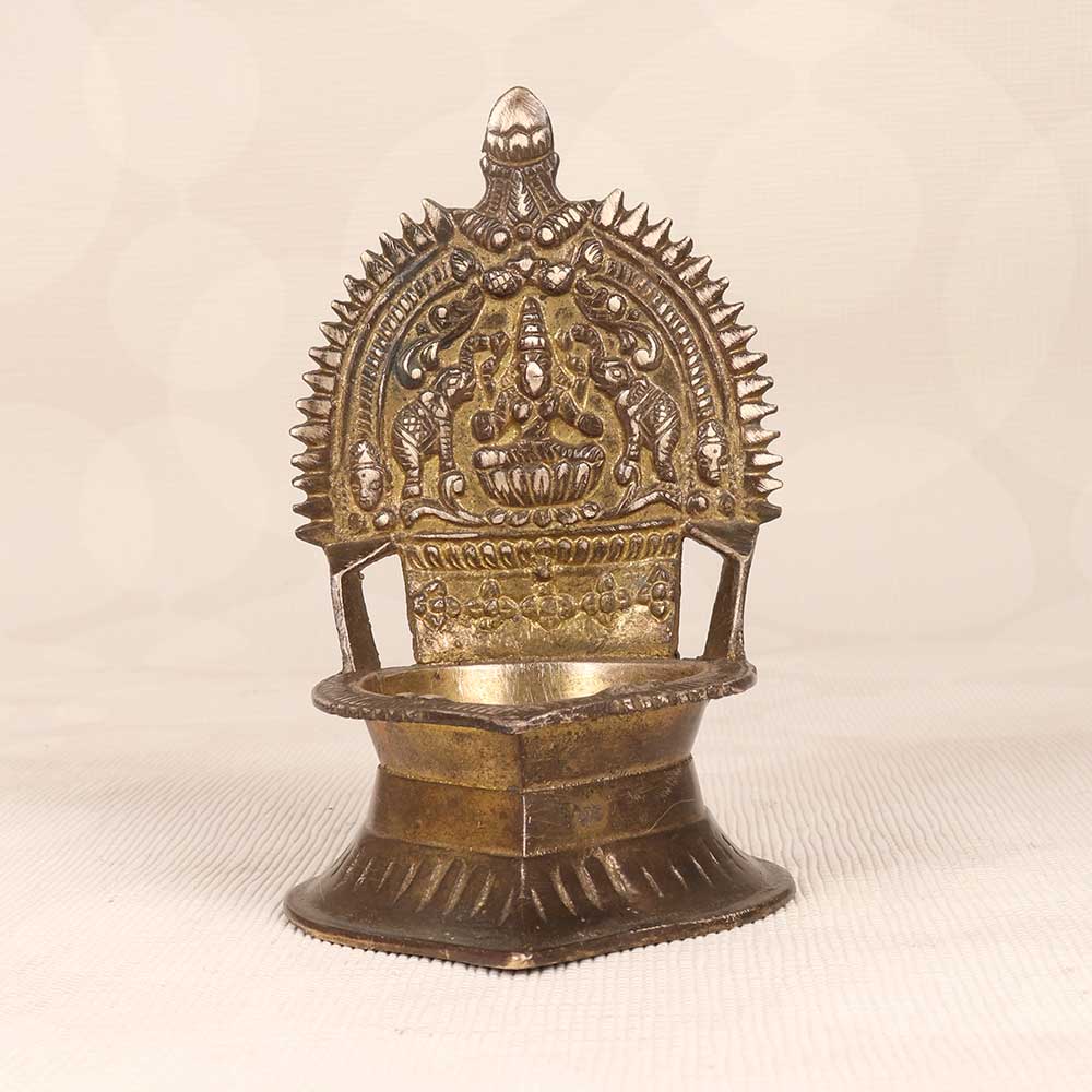 - Intricate vintage brass craftsmanship with Lakshmi and decorative etchings