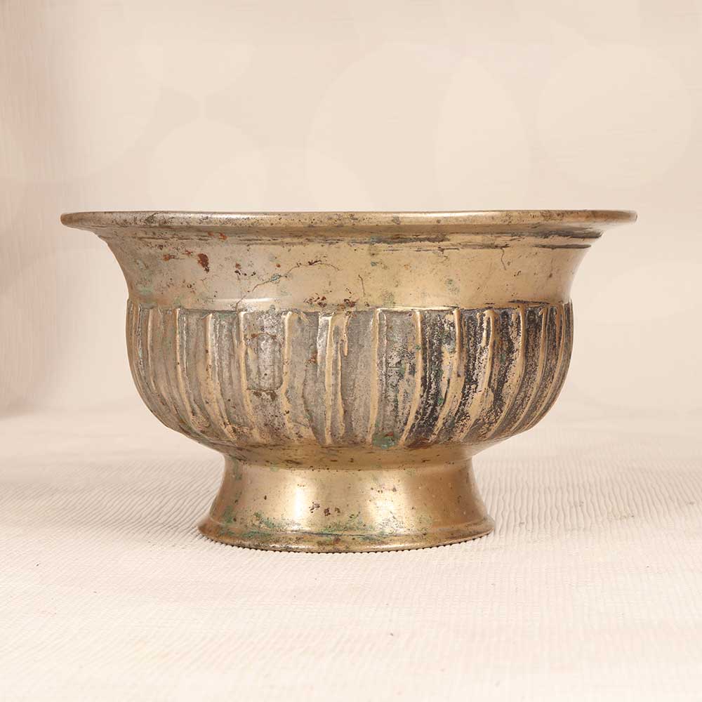Bring a timeless sacred tradition into your home with this vintage brass kumkum bowl. With its plain brown finish and intricate engraved design, this bowl elevates any prayer space or home altar. This kumkum bowl connects you to generations of spiritual practice. Use it to adorn murtis, apply tilaka markings or hold other sacred materials during meditation and worship. Handcrafted in India, every detail of this bowl reflects the beauty and meaning of age-old customs. Give your devotional practice a renewed sense of tradition and meaning. Bring the richness of Indian culture and heritage into your most sacred spaces. This kumkum bowl makes a thoughtful gift for family and friends celebrating auspicious occasions.
