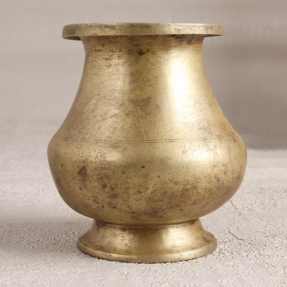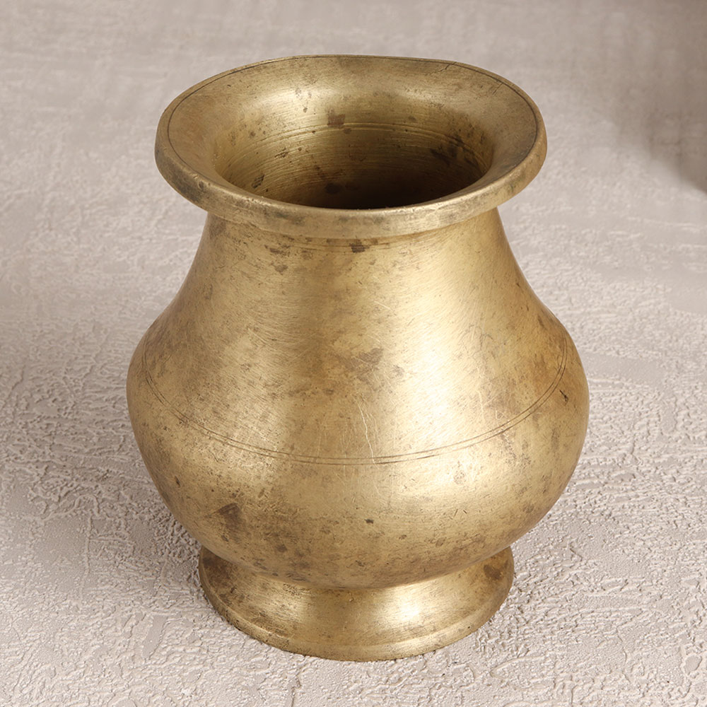 Decorate your home interior with this exquisite Vintage Brass Holy Water Pot that is a testament to timeless craftsmanship and cultural reverence. Handmade by highly talented Indian artisans in the intricate South Indian Art style, this pot boasts a rich antique brown finish that adds an aura of sanctity to any space. Versatile in purpose, it serves as a vessel for holy water during prayers, havans, or rituals, and seamlessly transforms into a charming flower pot. Enhance your temple offerings by using it to present water to the Sun God and Shivling. Crafted from high-quality brass, this piece radiates authenticity and durability. Its antique charm makes it a perfect addition to your home, office, restaurant, hotel, or cafe prayer room, bringing an air of spirituality and tradition. Ideal for collectors of vintage treasures, this pot is a timeless gift for your loved ones on special, festive, or auspicious occasions.