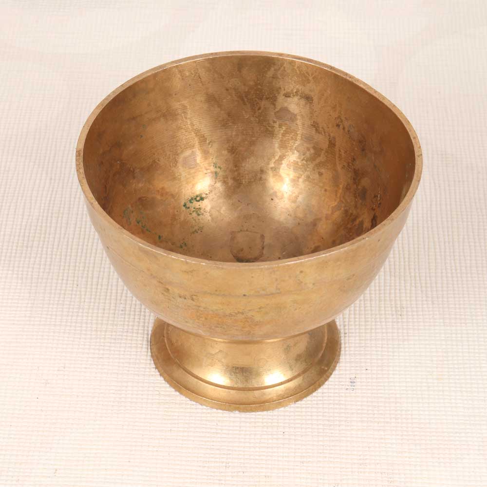 Add a sacred touch to your home with this vintage brass kumkum bowl. Crafted in South Indian Art style, this bowl features a traditional plain brown finish that gives it an antique aesthetic. The brass construction ensures durability while the round shape allows easy access for applying kumkum. Use this bowl in your daily puja to hold kumkum powder for the ritual of tilaka. The brass material represents purity and auspiciousness, making it the perfect vessel for this sacred powder. Apply the kumkum to your forehead as part of your spiritual practice to promote concentration and focus. For devotees of Hindu deities, this kumkum bowl makes a meaningful addition to your altar. Place it near the idol along with other puja items like diyas, flowers and incense. The vintage design contributes to the overall traditional ambiance you want when worshipping. Let this bowl be a cherished part of your religious rituals for years to come.