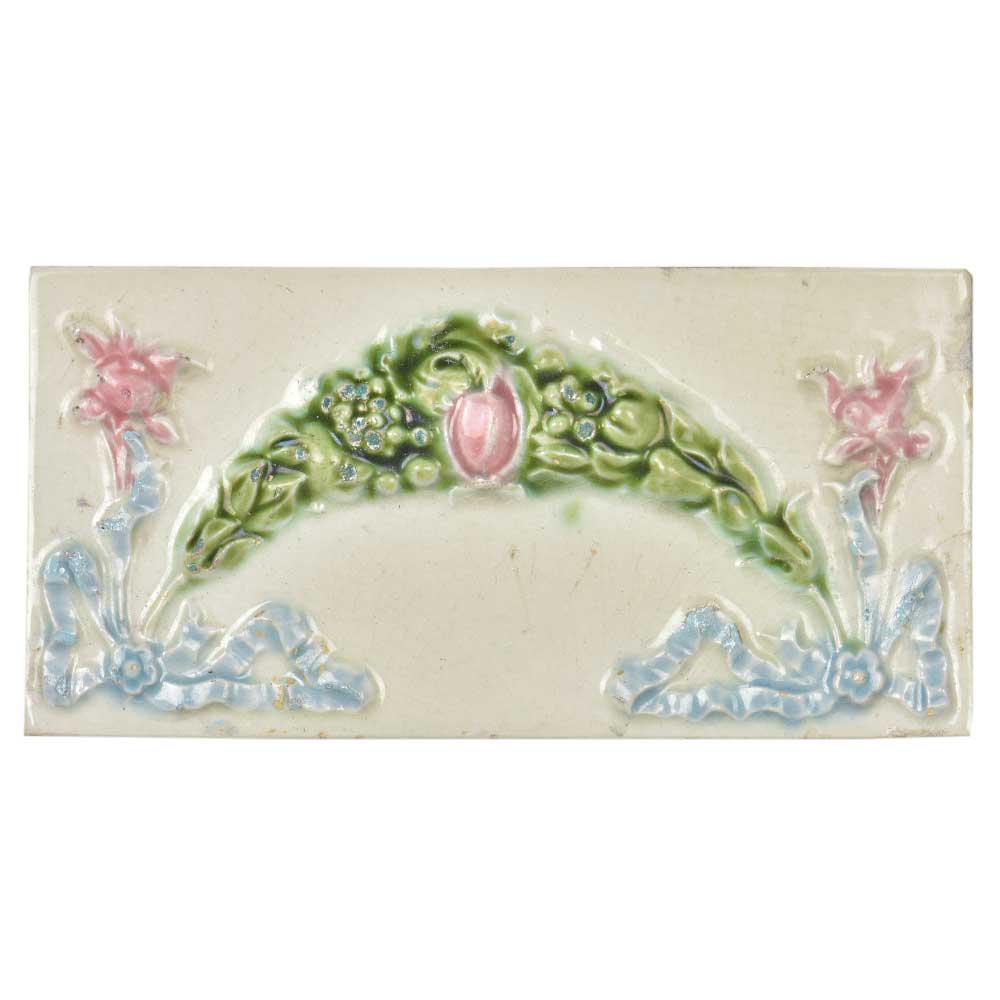 Vintage Ceramic collectible tiles with multi colored floral garland embossed cermic tile with a two pink colored flowers on both ssides is made in white tile . These tiles are used as a home décor item or gifting option. A great Vintage collection.