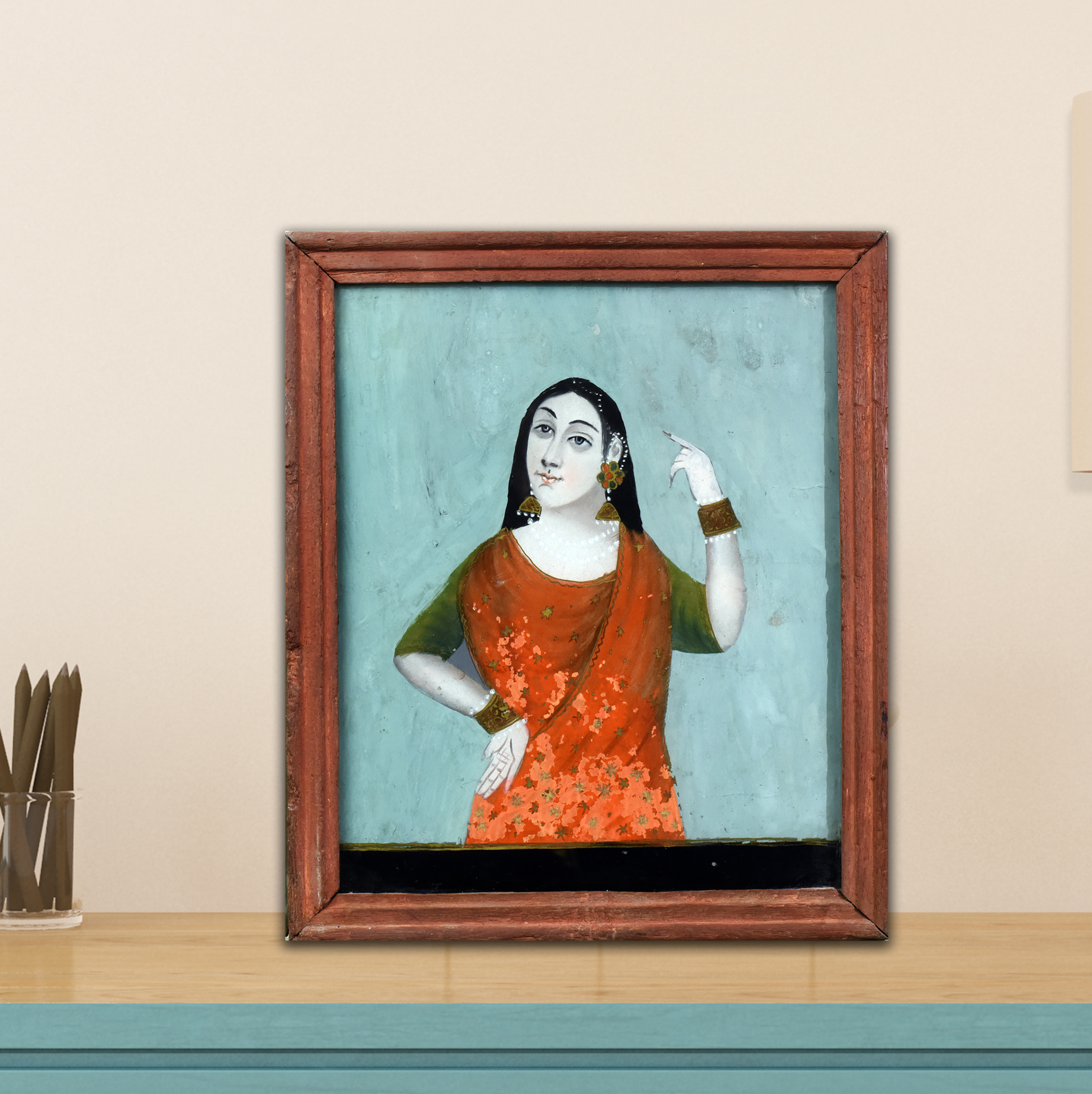 Prepare to be captivated by the timeless elegance of our Vintage Glass Painting of a Lady. This exquisite work of art is a stunning addition to any space, effortlessly blending the charm of the past with a modern, sophisticated flair. Imagine stepping into a room that exudes a sense of refined sophistication and timeless allure. Our Vintage Glass Painting of a Lady is the perfect centerpiece, drawing the eye and commanding attention with its captivating elegance. The delicate brushstrokes and lifelike depiction of the lady's features create a sense of depth and emotion, inviting you to lose yourself in the captivating artwork. This stunning piece is designed to elevate any space, whether you're looking to add a touch of vintage charm to your living room, a sophisticated accent to your bedroom, or a sophisticated focal point in your entryway. Its versatile design seamlessly complements a wide range of decor styles, from traditional to modern, making it a must-have for the discerning home decorator. Elevate your walls and immerse yourself in the timeless beauty of our Vintage Glass Painting of a Lady. This exquisite piece is a true work of art, destined to become a cherished centerpiece in your home and a conversation starter for years to come.