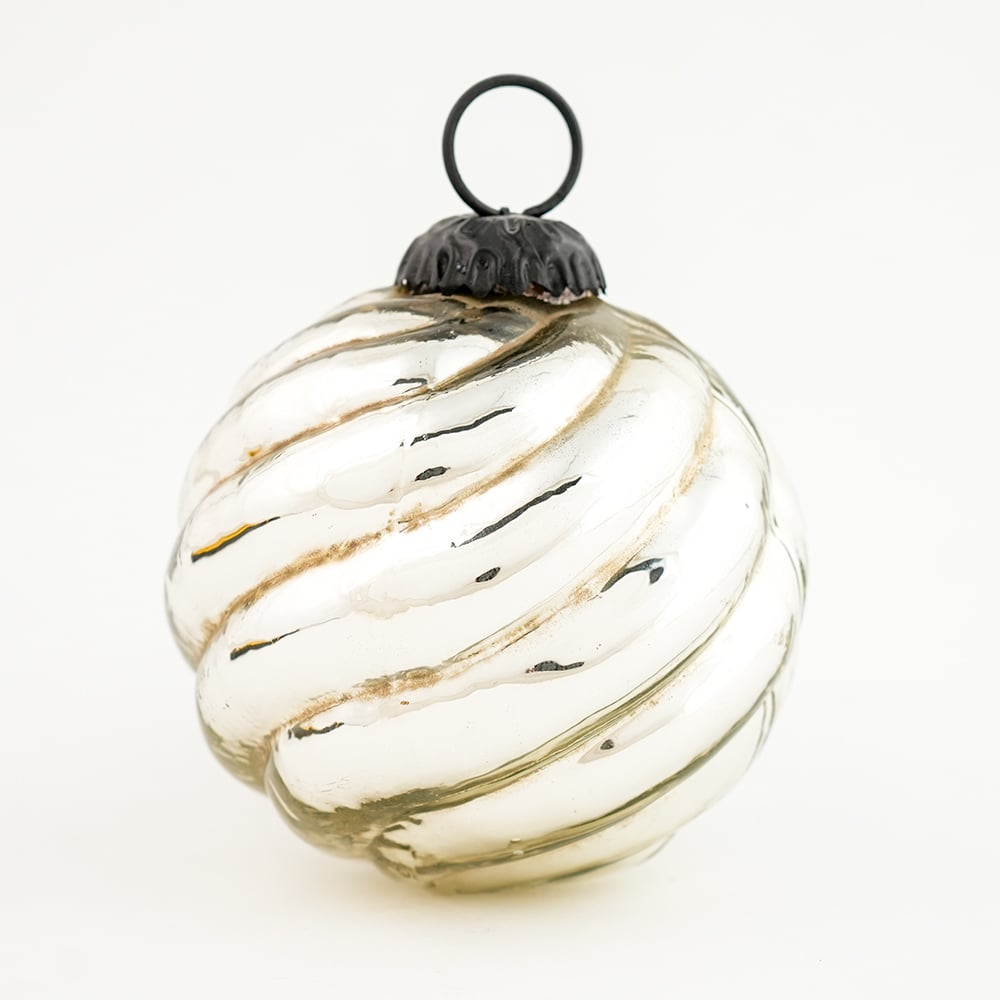 Vintage Silver Round Hanging Ornament For Tree decor. Crafted from high-quality glass with a smooth glossy finish, this decorative bauble adds a classic and festive touch to Christmas trees, wreaths, and holiday displays.