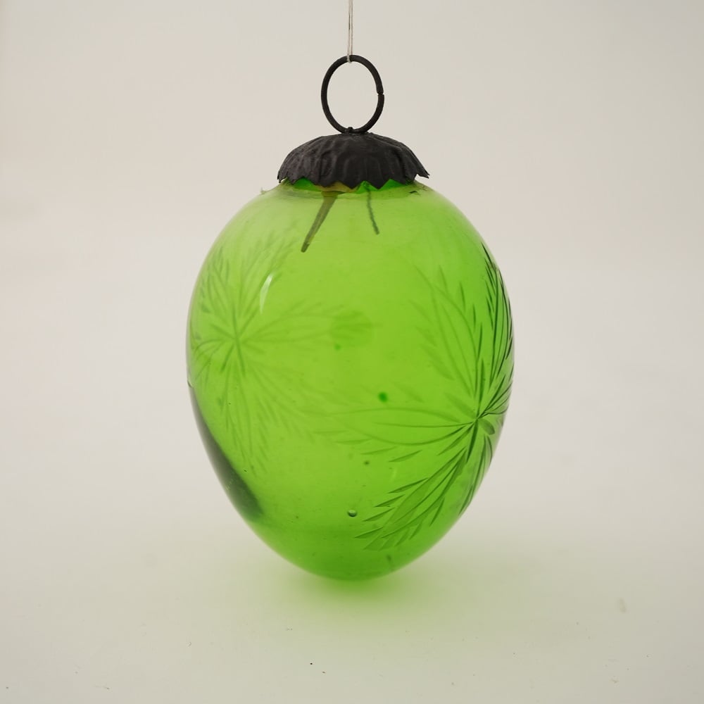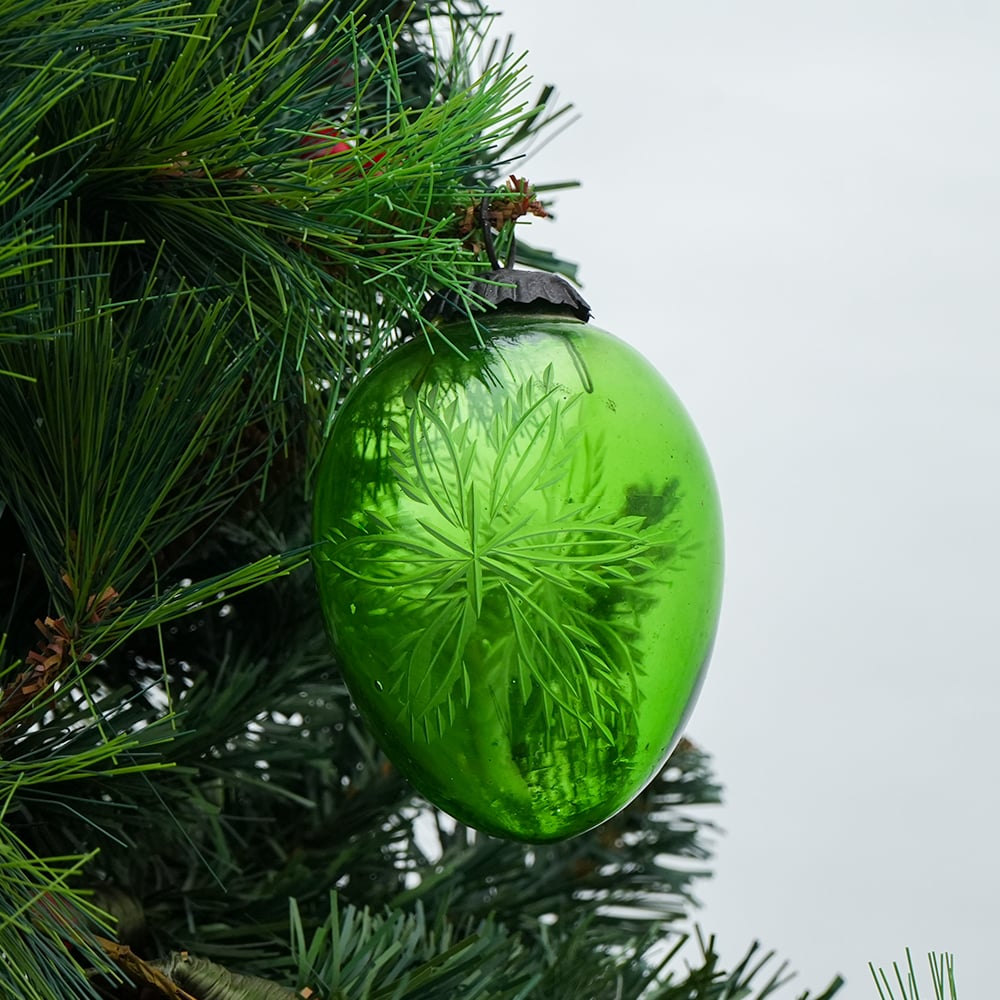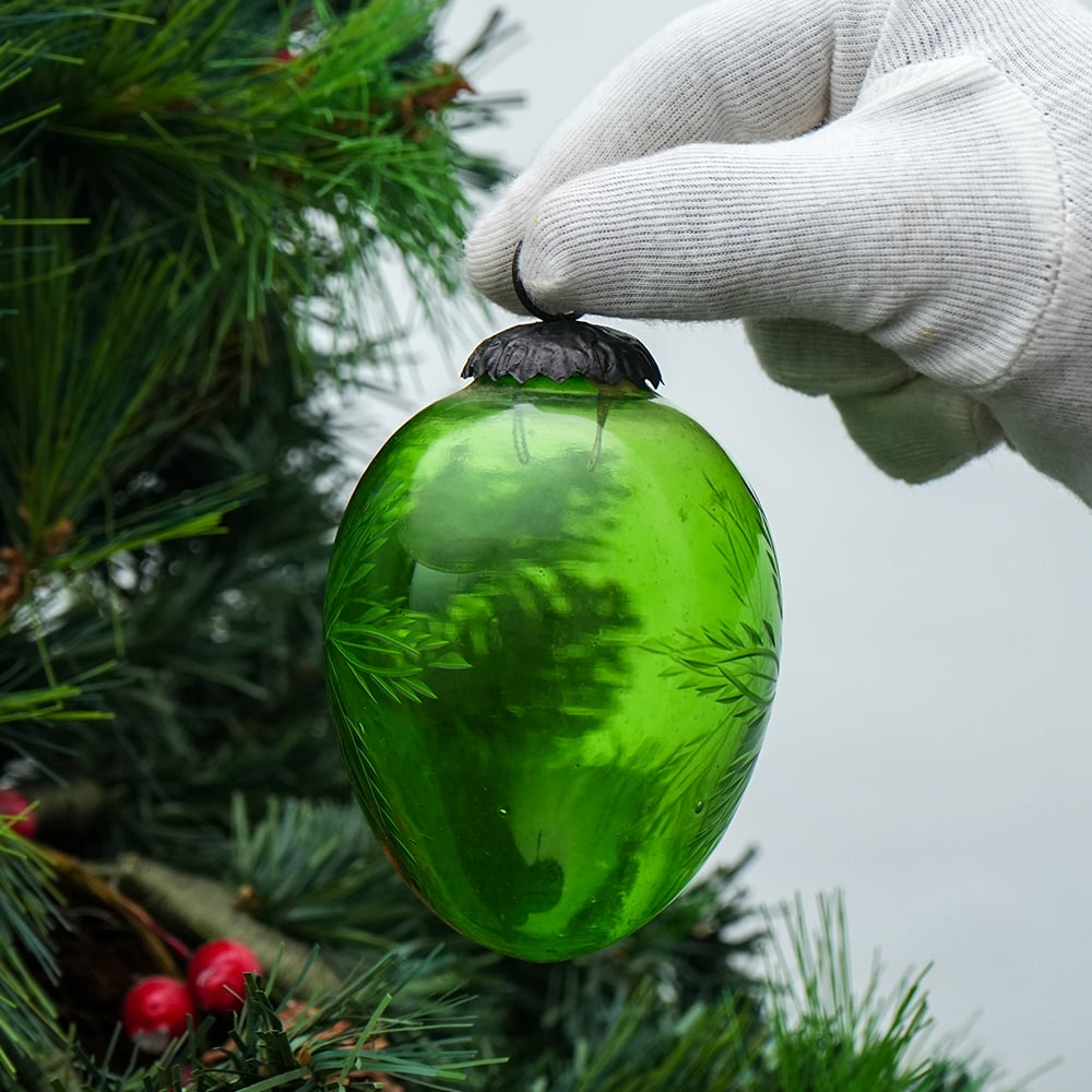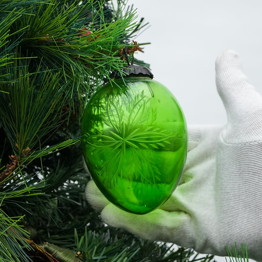 • Vintage Green Cut Glass Christmas Bauble Hanging Ornament
