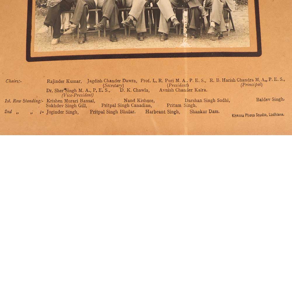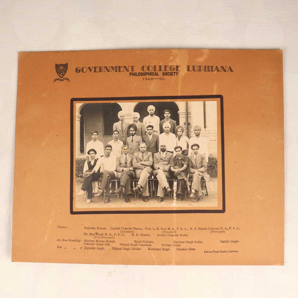 Step back in time with this stunning vintage black and white photograph of the Philosophical Society at Government College Ludhiana in 1949-50. This is a rare glimpse into the past, capturing a moment in history with this group portrait of young scholars gathered together. This vintage photograph offers a fascinating look at academic life in the mid 20th century. See the sharp attire and serious expressions of the students and professors, united by their passion for learning and debate. Display this photograph and be transported back to a meeting of bright young minds on the cusp of India's independence and growth. A one-of-a-kind artifact for history buffs and photography collectors. Perfect for anyone who wants to decorate with a meaningful piece of history. This vintage photograph makes a thoughtful gift and an enriching addition to a personal collection. Let this image spark conversations about the past and inspire intellectual curiosity.