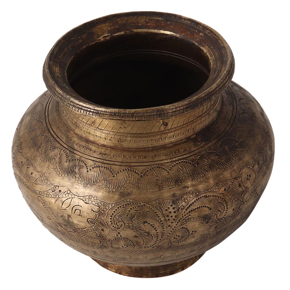 Vintage Hand Carved Brass Pot
