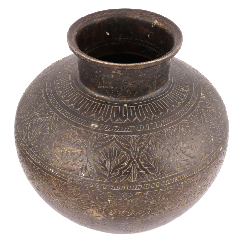 Vintage Hand Carved Design Brass Water Pot Lota