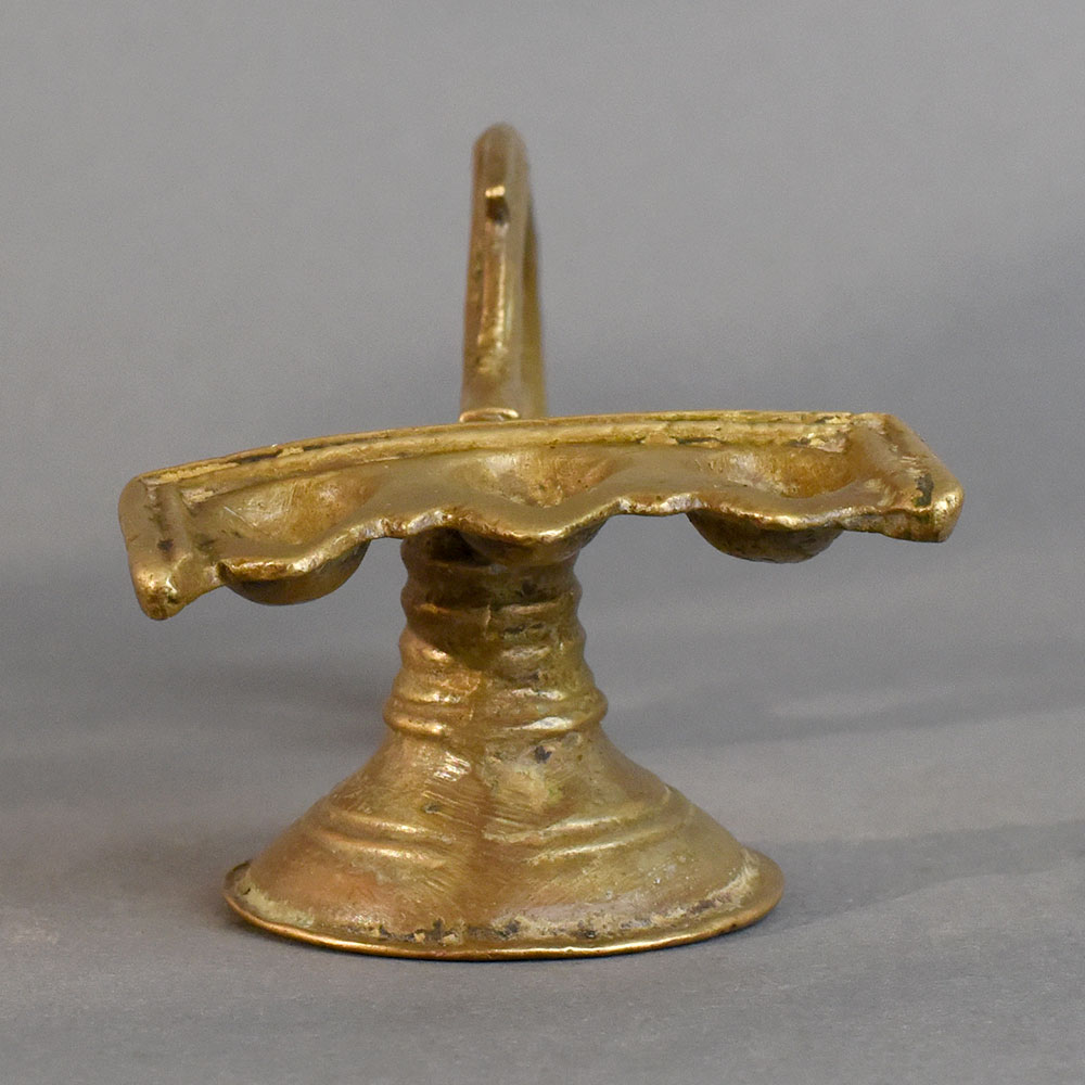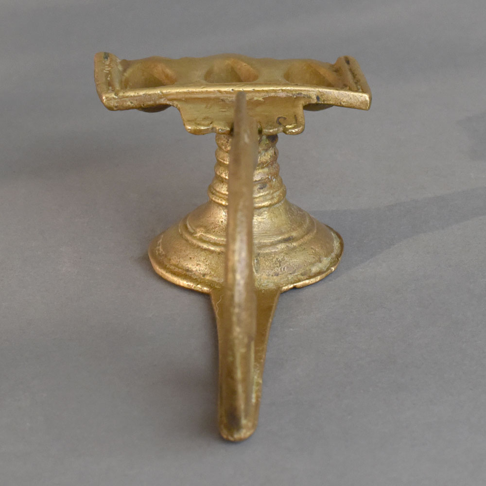 - Vintage brass aarti lamp with three wick holders
