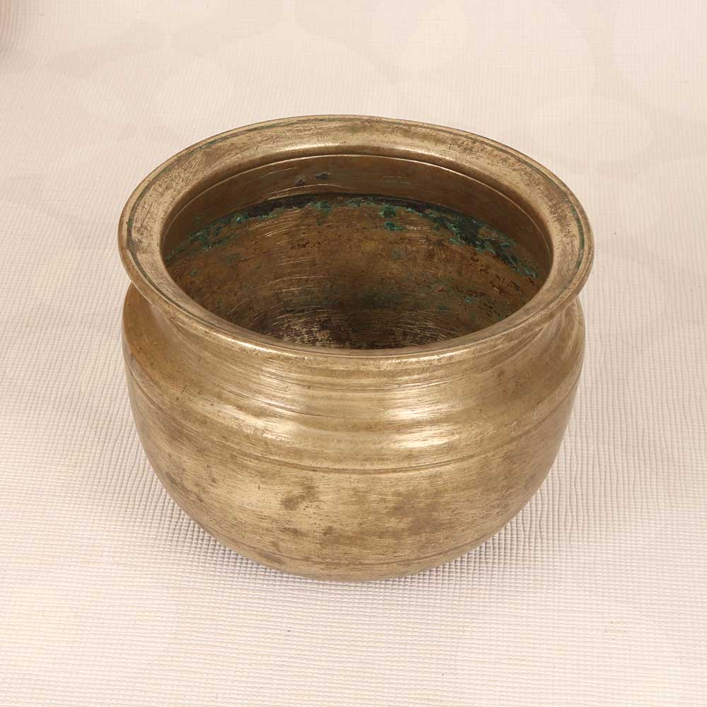 Bring old-world charm to your home with this vintage brass cooking pot. With its timeworn patina and elegant curves, this decorative pot makes a statement wherever it's displayed. Make your home decor blossom with this vintage-inspired brass pot. The gently hammered surface and rich, mellowed brass patina add an antiqued allure perfect for romantic farmhouse, rustic cottage, or vintage glam rooms. Fill it with your favorite blooms or bundle of dried lavender and let it infuse any space with old-world character. An elegant way to highlight your personal style. With its nostalgic design, this brass pot brings a touch of yesteryear to your decor. However, it is intended for decorative use only and not recommended for cooking purposes. Place a pillar candle inside to create a warming glow or fill it with faux florals for an easy yet impactful accent. Wherever it's displayed, this vintage pot adds artful ambience.