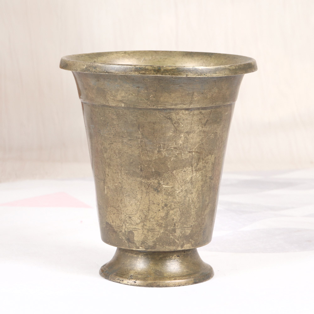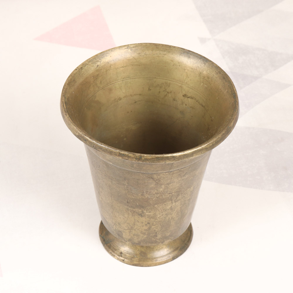 Imbue your sacred rituals with a sense of ancient grandeur using this exquisite brass holy water cup. Crafted with meticulous attention to detail, this vessel embodies the timeless artistry of South India. The gleaming brass construction ensures durability and a striking, lustrous appearance that will elevate any puja or decorative display. Whether you're seeking to deepen your spiritual practice or simply want to add a touch of cultural elegance to your home, this holy water cup is a versatile and meaningful investment. Its intricate, ornate design features intricate patterns and motifs that pay homage to India's rich religious heritage. Fill it with holy water, fragrant oils, or use it to hold flowers, incense, or other ritual offerings. Wherever you place this stunning piece, it is sure to command attention and inspire reverence.