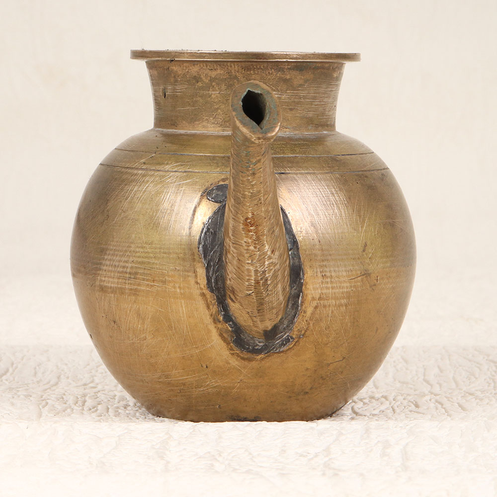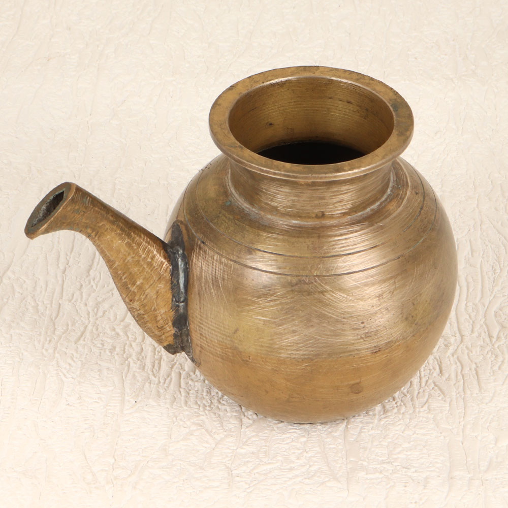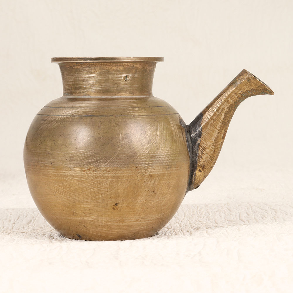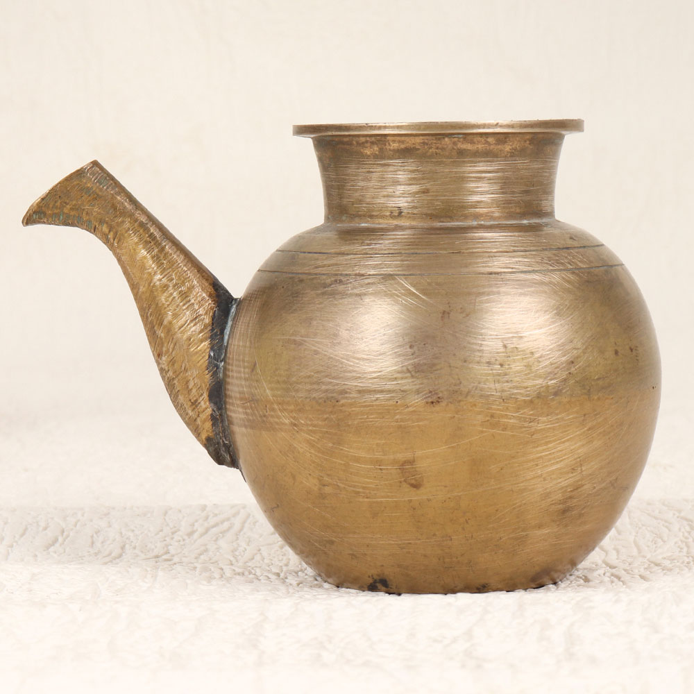 Buy a Vintage Brass Pot with Spout online that is a cherished creation meticulously handcrafted by talented Indian artisans from South India. Crafted from high-quality brass, the pot boasts an antique brown finish, adding an air of antiquity to its aesthetic. This exquisite piece serves a noble purpose during prayers, rituals, and havans, cradling holy water with grace and reverence. Versatile and striking, this vintage pot finds a place of honour in homes, offices, restaurants, hotels, or cafes, transforming any space into a haven of spirituality. Beyond its religious significance, the pot stands as a remarkable decor piece, inviting admiration for its intricate design and historic allure. An ideal addition to any vintage collection, it serves as a thoughtful gift for loved ones on special, festive, or auspicious occasions, embodying the enduring spirit of tradition and craftsmanship.