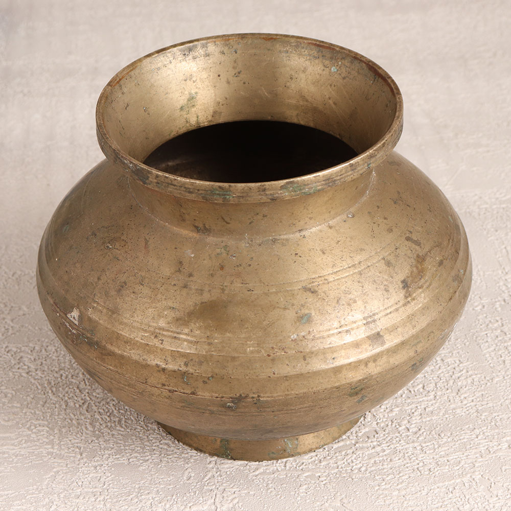 Transport yourself to a bygone era with our exquisite vintage brass holy water pot. Handcrafted by professional Indian artisans hailing from Bihar, this magnificent piece exudes a sense of timelessness and tradition. Made from high-quality brass, it carries with it the rich heritage of Indian craftsmanship. With its antique brown finish, this holy water pot serves not only as a vessel for sacred rituals but also as a charming decoration. Its versatility allows it to grace your home, office, hotel, cafe, shop, or restaurant prayer room. Use it during prayer ceremonies to sprinkle holy water, or transform it into a small flower pot, adding a touch of nature to your space. This piece is perfect for collectors of vintage treasures and can be proudly displayed at exhibitions, where its beauty and history can be appreciated by all. Additionally, it makes for a thoughtful gift for your loved ones on special, festive, or auspicious occasions, sharing the beauty and significance of Indian artistry.