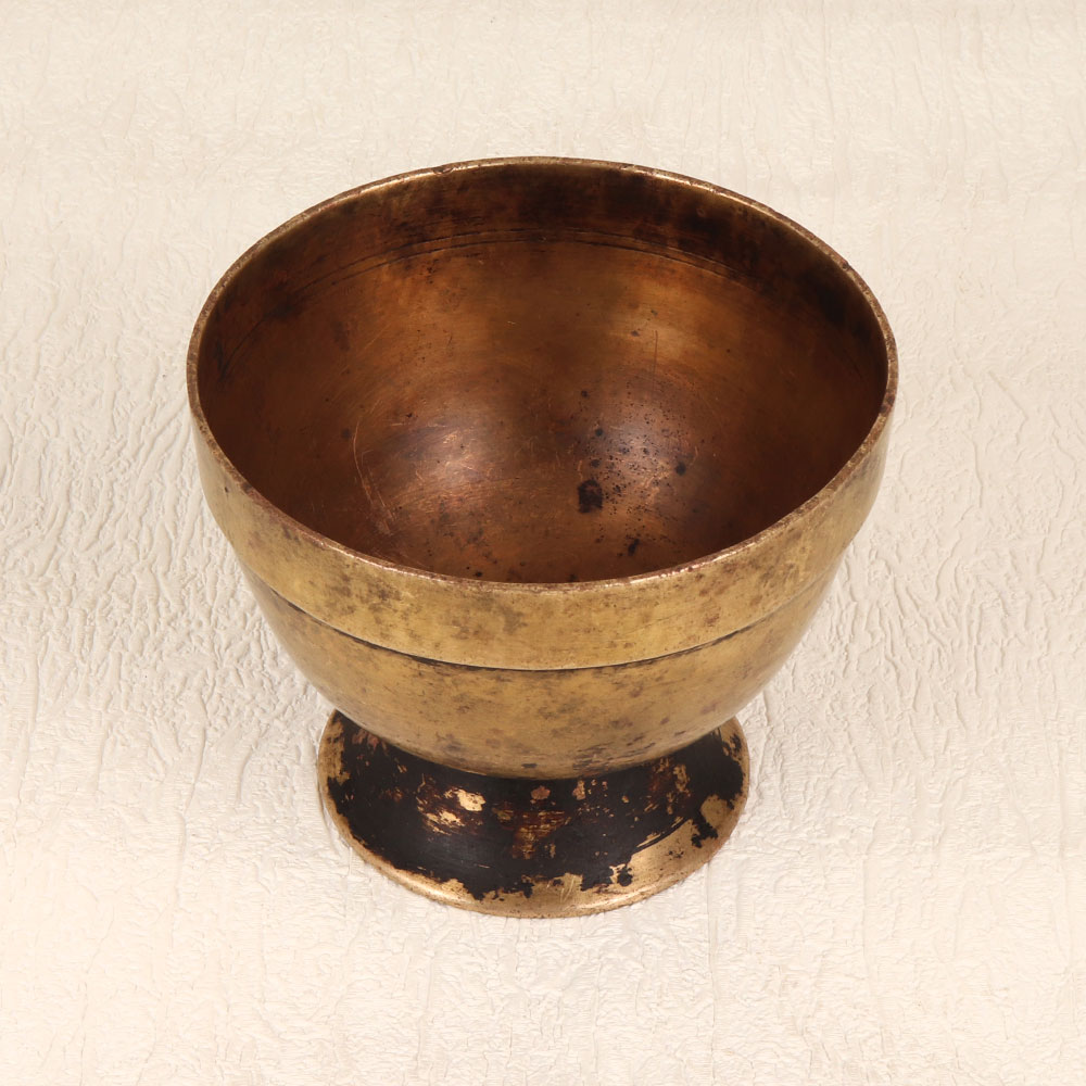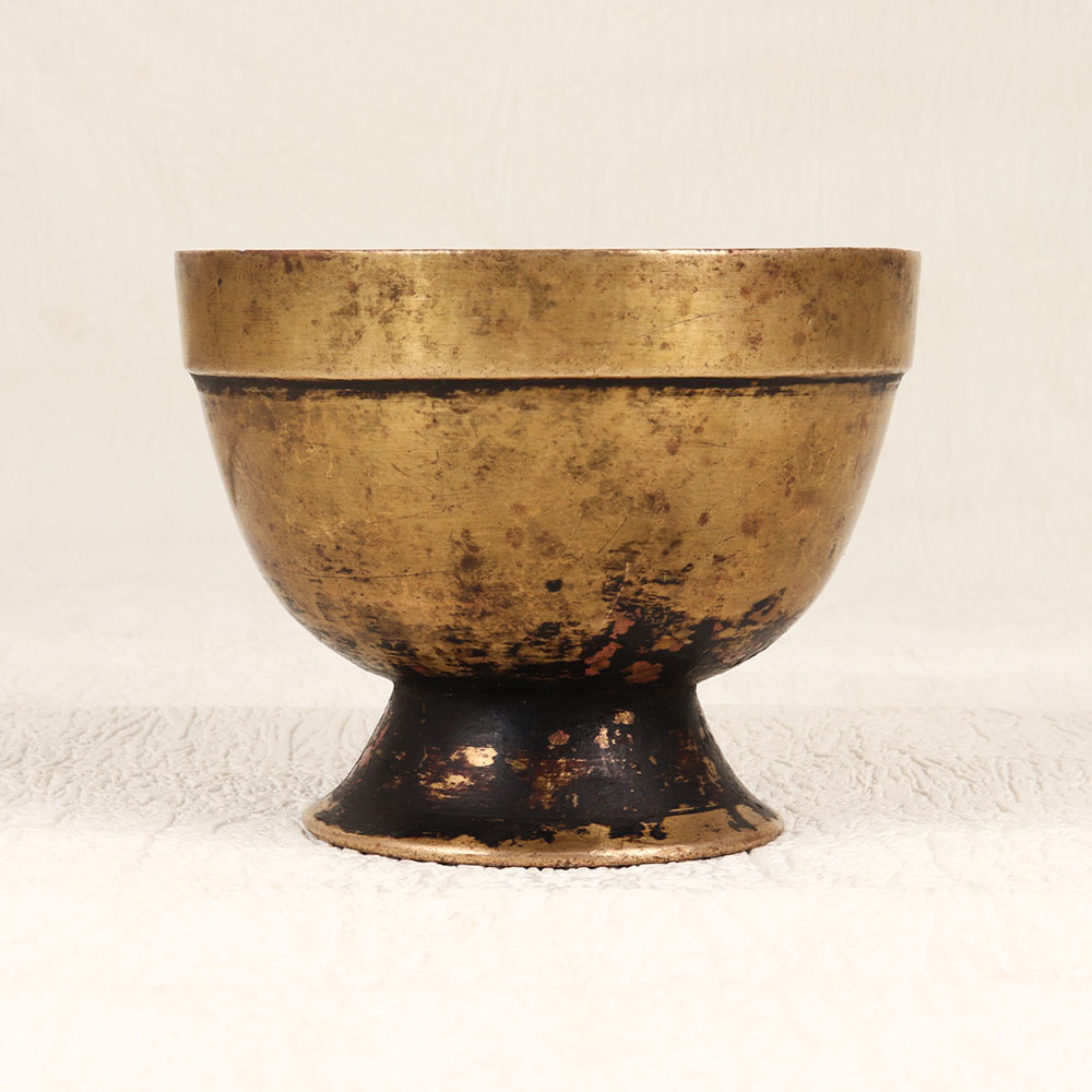 This Vintage Brass Kumkum Bowl with Base Stand brings an essence of tradition and spirituality to your prayer space. Handmade by highly skilled and experienced Indian artisans in the revered South Indian Art form, this exquisite piece is crafted from high-quality brass, ensuring both durability and authenticity. The bowl features an antique brown finish, adding a touch of vintage charm to its design. Its purpose goes beyond mere decoration, as it serves a vital role during prayers, rituals, and havans, holding the sacred kumkum tilak. Placed on the accompanying base stand, this distinctive piece becomes a focal point in any home, office, restaurant, hotel, or cafe prayer room. Not just limited to religious use, the Vintage Brass Kumkum Bowl is also a splendid addition to your decor, enhancing the aesthetic appeal of your space. Ideal for collectors of vintage treasures, this bowl is a valuable addition to your curated ensemble. Express your reverence by gifting this masterpiece to your loved ones on special, festive, or auspicious occasions.