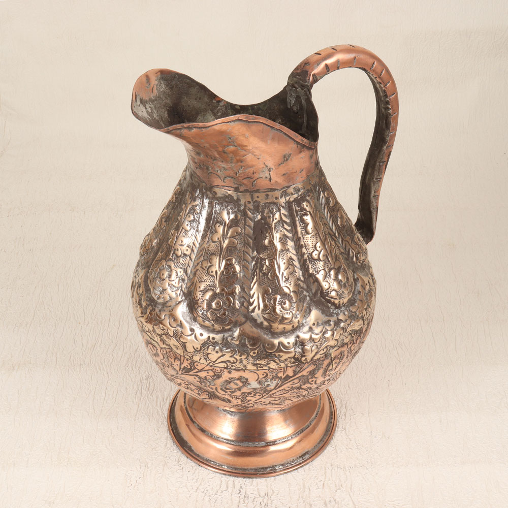 • Vintage Handcrafted Copper Jug with Handle for Flower Decor