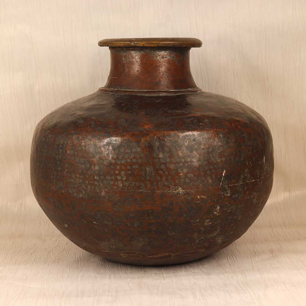 Unlock the timeless charm of Central India's rich artistry with this exquisite vintage copper pot. Meticulously crafted by skilled artisans, this piece features a captivating hammered texture that reflects the light in mesmerizing patterns, adding a touch of rustic elegance to any room. This vintage copper pot is more than just a decorative accent - it's a work of art that tells a story. The intricate hammering process requires immense skill and patience, with each piece unique in its subtle variations. Display this stunning pot on a mantel, shelf, or table to instantly elevate your space and infuse it with the warmth and character of traditional Indian craftsmanship. Whether you're a lover of vintage finds, a collector of unique home decor, or simply someone who appreciates the beauty of handmade artistry, this copper pot is a must-have. It will breathe new life into any room, serving as a conversation piece that showcases your impeccable taste and appreciation for timeless design. Bring the rich cultural heritage of Central India into your home and enjoy the captivating allure of this truly special piece.